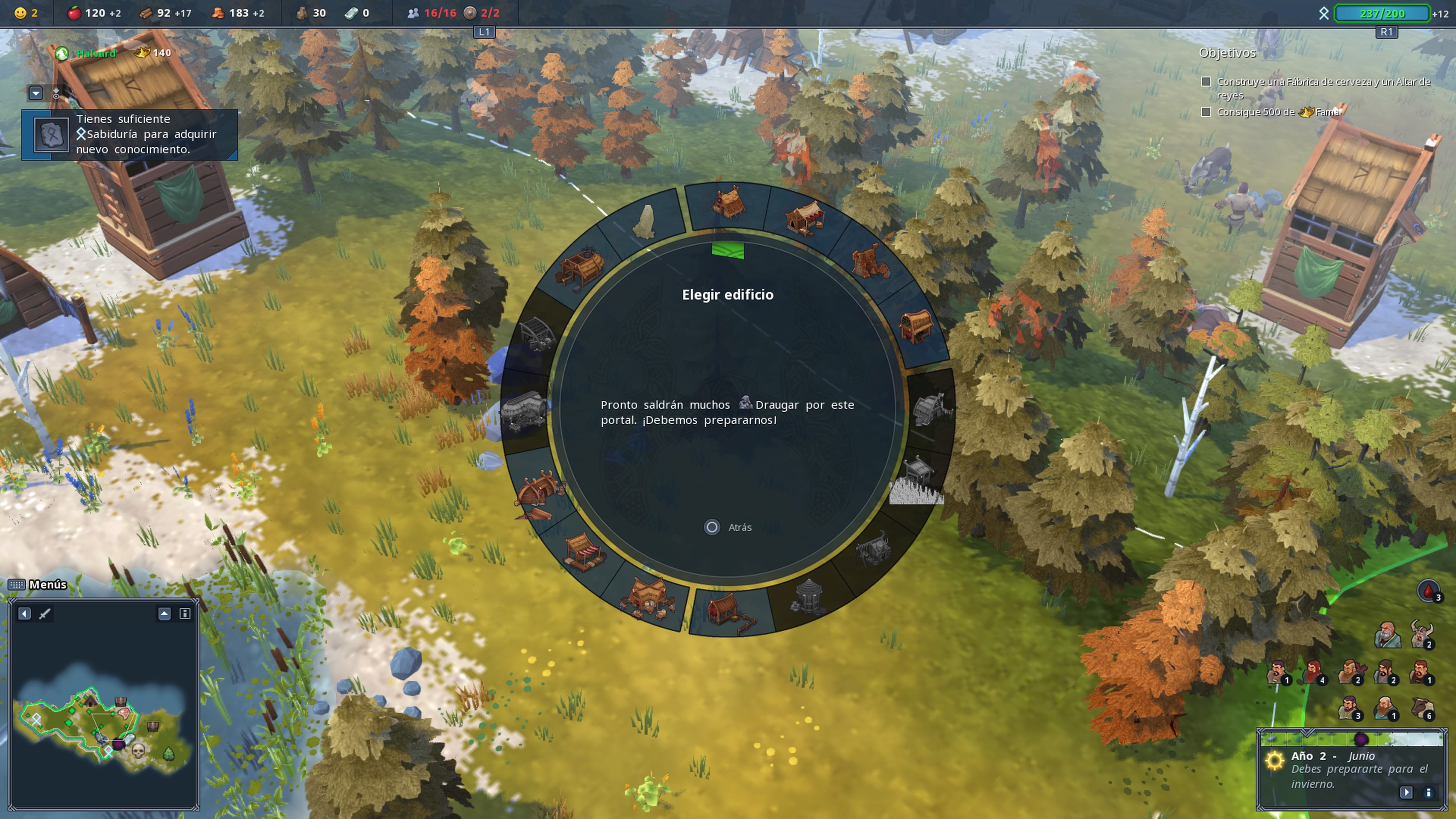 Northgard es juego simple, con una estética muy fiel a otros títulos del género, pero que destaca por su colorido y su gama cromática. El juego no busca tener un aspecto realista sino una estética con personajes algo deformed que se asemejan a pequeños muñecos. Por su parte, las infraestructuras están muy bien logradas y, como hemos comentado. todo lo que es la estética del juego busca esa sencillez y ambientación muy carituresca, pero llevada a ese mundo nórdico en donde cada parte de sus escenarios está construida para transportarnos a estos parajes dominados por los vikingos.