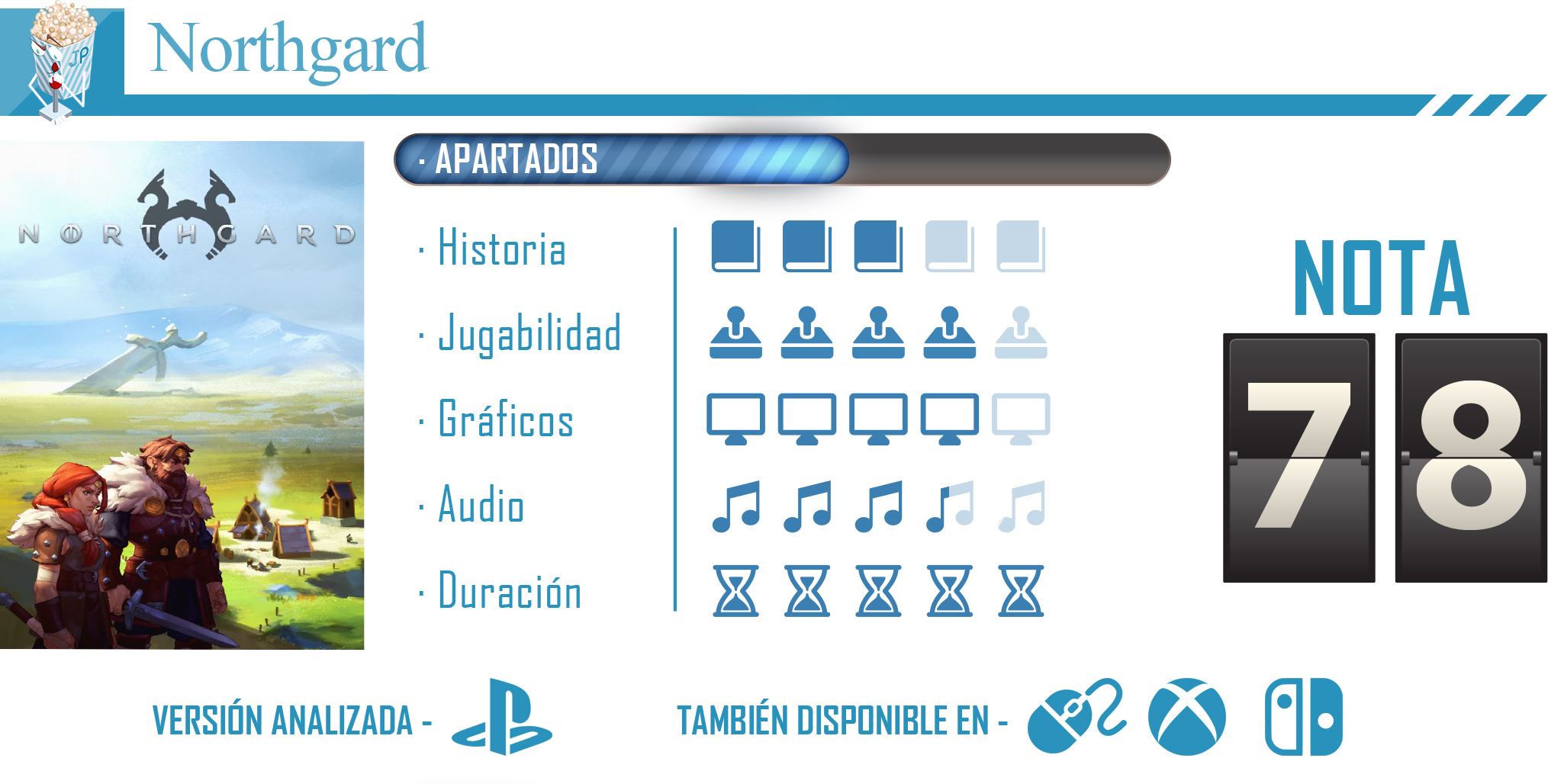 Northgard nos propone un juego de estrategia que se centra mucho en ofrecernos diversas mecánicas en lugar de centrarse más en las que posee un juego de estas características y pulirlas. El modo campaña se muestra como un incentivo bastante atractivo, aunque no termina de arrancar ya que nos ofrece un argumento bastante clásico y lleno de tópicos. Donde el título gana es el su parte de gestión y combates en donde podremos crear auténticos poblados nórdicos y tomar parte en encarnizadas batallas entre los contendientes de los diferentes clanes.