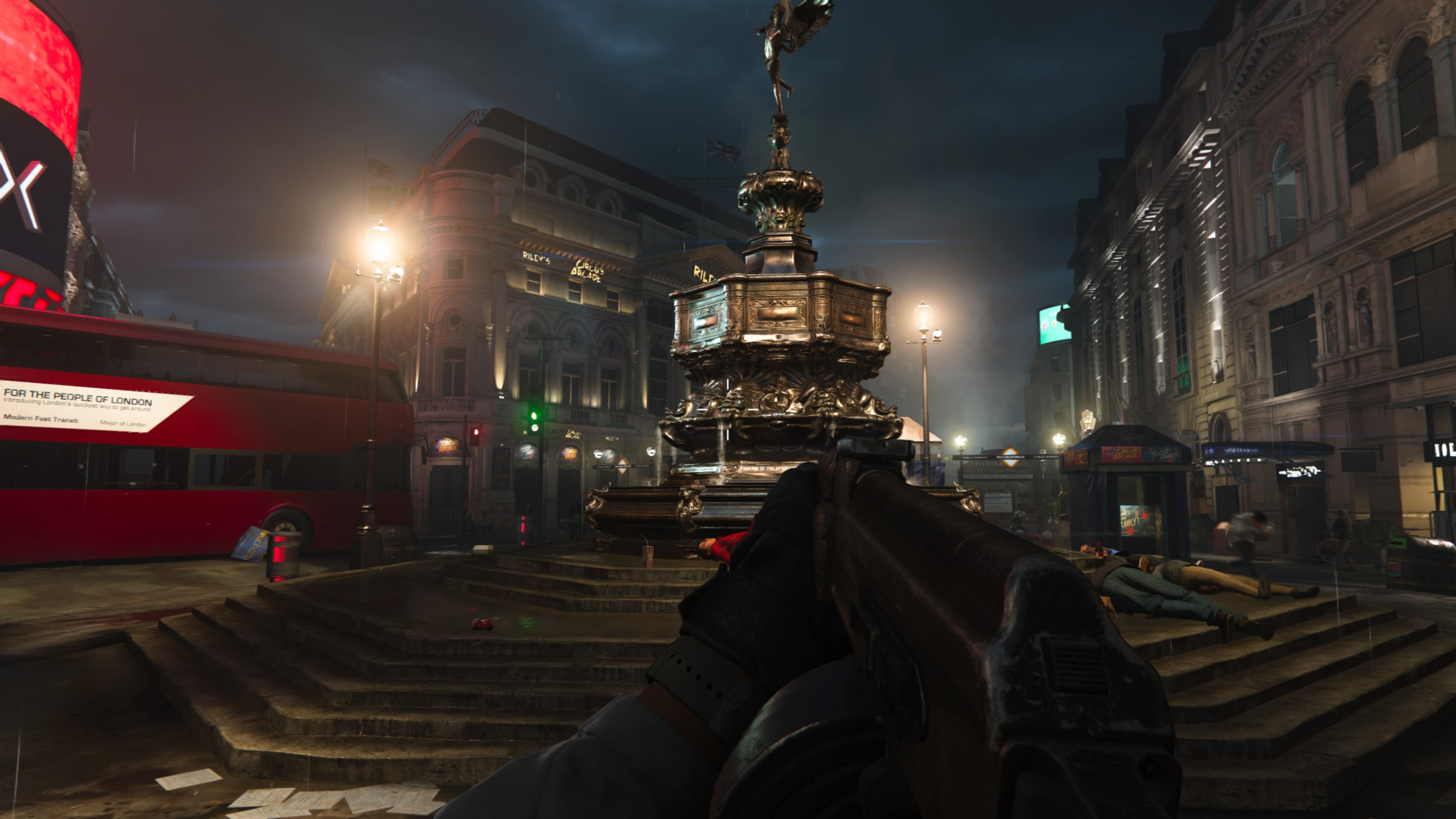 En cuanto a los escenarios, estos se muestran muy detallados en todos sus aspectos, ya sea algunos tan interesantes como es Picadilly Circus, como en los pueblos de oriente próximo o hasta en una simple prisión. Todo está muy completo y en general se nota el esfuerzo en los detalles de cada uno de ellos. La iluminación esta muy cuidada en todo momento y no es para menos debido a la importancia que se le ha dado a la visión nocturna y su uso.