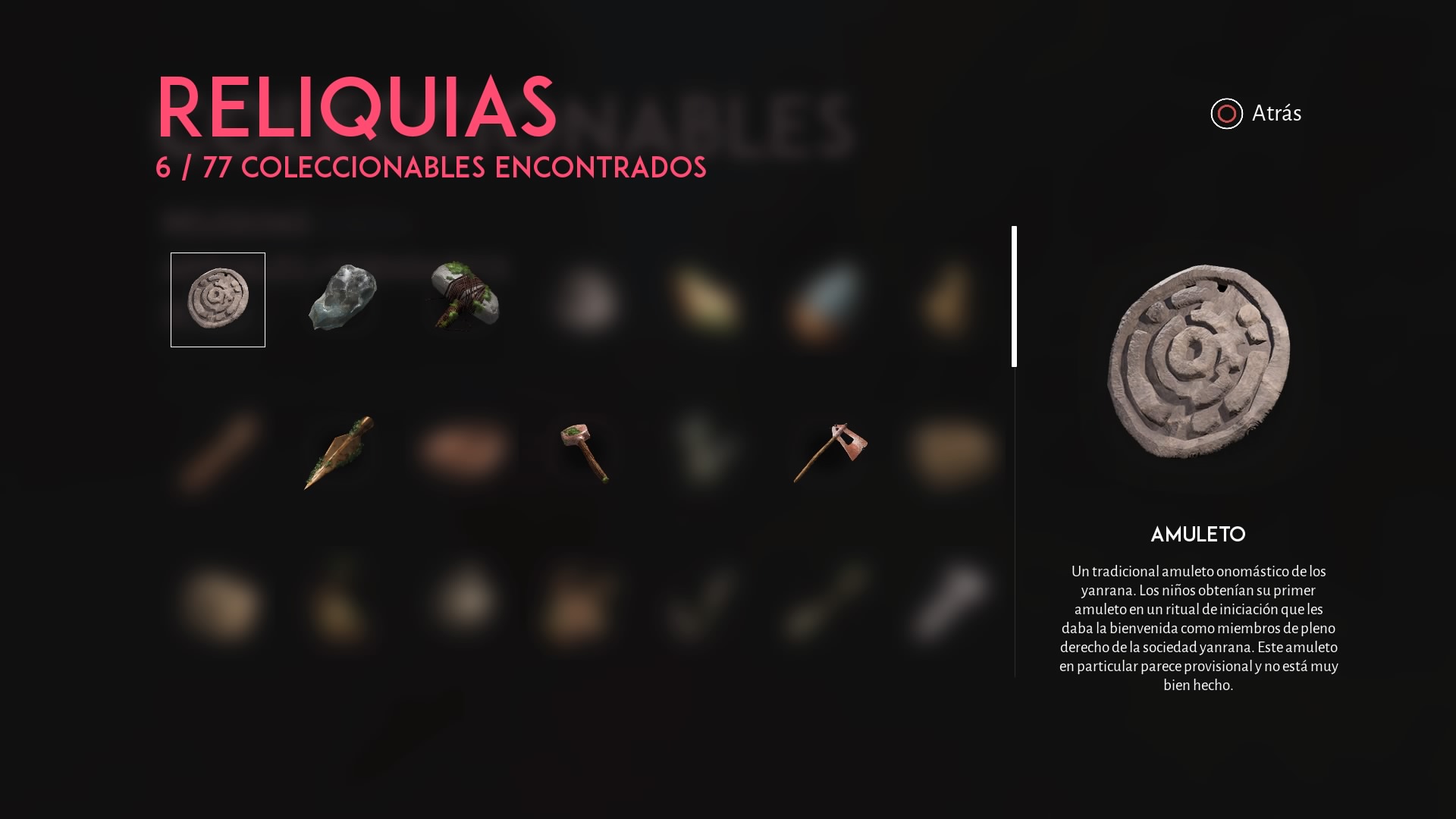 Además de recuerdos, también podemos encontrar diferentes objetos coleccionables como reliquias, tipos de setas y animales legendarios. Algunos de ellos nos servirán para poner en contexto la vida de los habitantes del lugar, pero no son necesarios para avanzar en el juego, para ello solamente necesitamos encontrar los recuerdos.