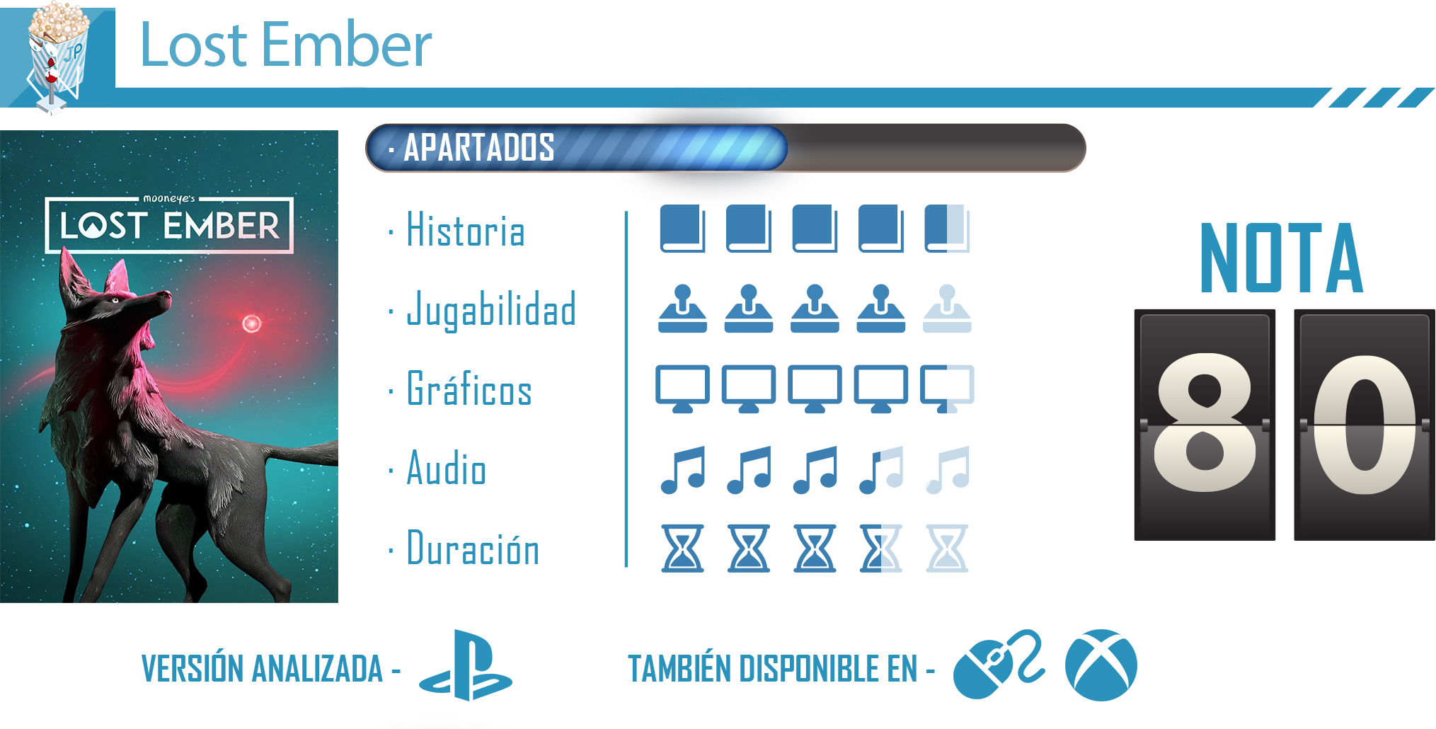 Lost Ember es un juego ideal para perderse y relajarse con tu consola, con unos bellos paisajes y muy relajante, realmente parece que estás paseando, además de que puedes explorar el mundo y sacarle el máximo provecho reuniendo todos los objetos coleccionables. Si estás en un momento de estrés y te apetece desconectar, te recomiendo mucho este juego, además de que la historia, sobre todo el final, está lleno de emociones. Las únicas pegas que le pondría son esos pequeños errores que he comentado en jugabilidad y que como no tengas mucha orientación de puedes perder y estar dando vueltas bastante rato, pero por lo demás es un título estupendo, además de su buena relación calidad-precio.