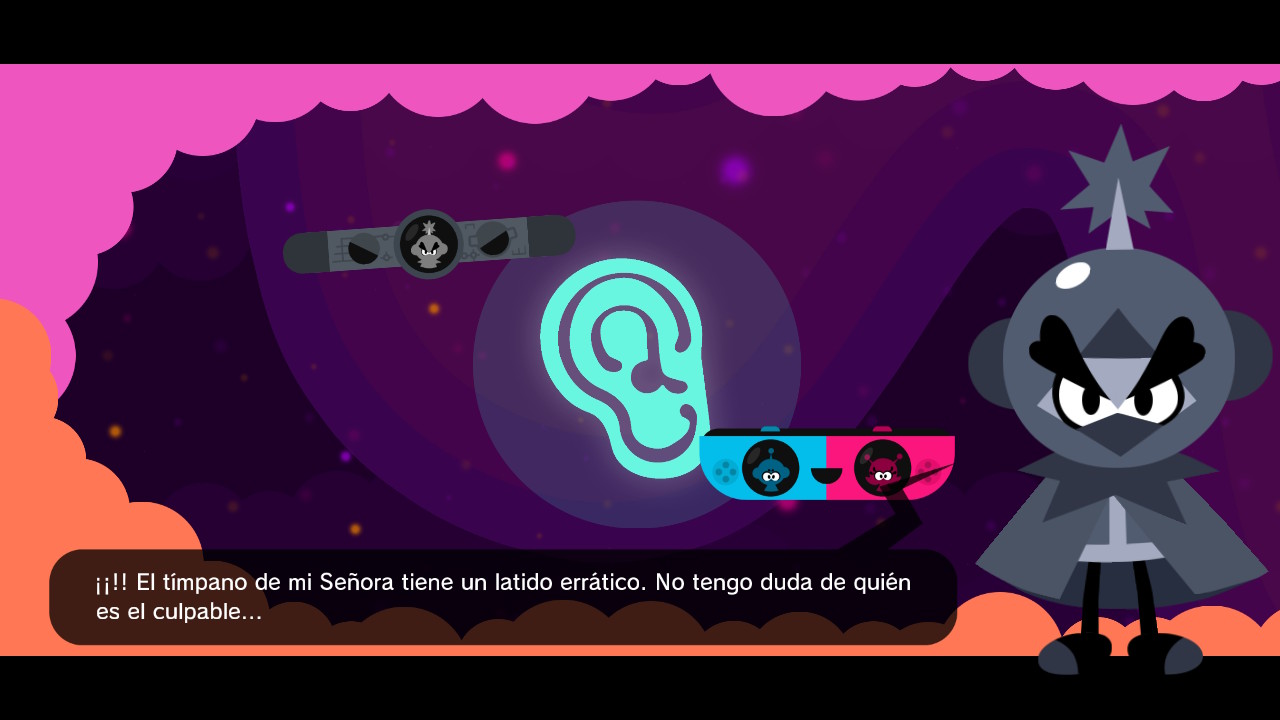 Lo primero que llama la atención es el diseño de la nave de las vitaminas, inspirados en los JoyCon de la Nintendo, los de color azul y rojo, pero en el juego, para que te quede claro y cristalino que Mina-girl es una chica, muy chica y mucha chica han puesto en lugar del color rojo el rosa, como si no pudiera ir de rojo o Vita-boy no pudiera ser rosa o rojo (un poco ranciete esto). Por lo demás tienen una estética muy vintage, tanto las vitaminas como la familia Sable, al más puro estilo Los Supersónicos, en el que, de nuevo, tenemos un poco ese toque rancio en el que ella es la que no tiene un trabajo remunerado, se encarga del doméstico, y es la que cuida de los niños, mientras que el marido sale en su capítulo y poco más.