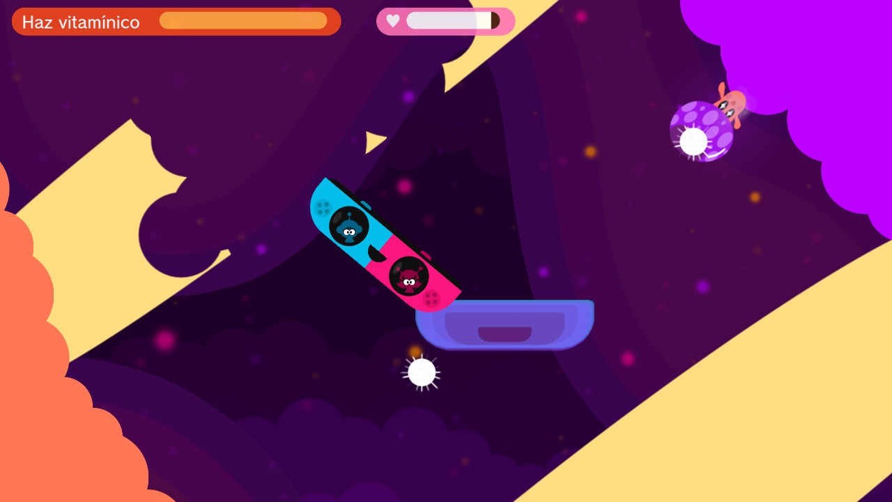 Podemos jugar en dos modos: un jugador/a y dos jugadores/as. Si elegimos el primero, el manejo de la nave de las vitaminas lo haremos controlando con ambos JoyCon, mientras que el segundo quién elija a Vita-boy se encargará de la dirección de la nave y de accionar el haz vitamínico, mientras que quién elija a Mina-girl se encargará de la rotación de la nave y de la dirección del haz.