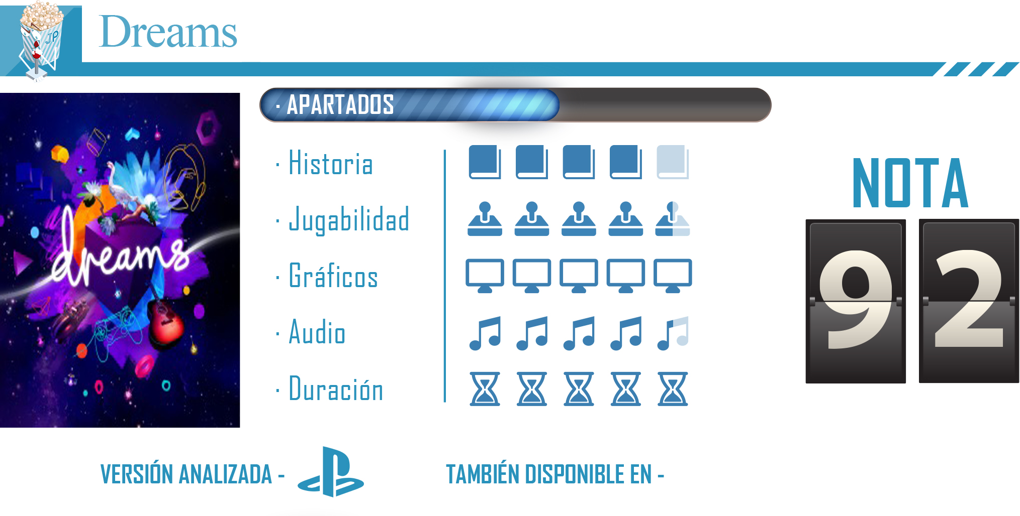 Dreams es un título a largo plazo, eso es una de las sensaciones que tenemos al jugarlo. Es un juego que ha venido para quedarse, de eso no hay duda, una herramienta de contenido que va a funcionar hasta que la comunidad quiera pues de ella se nutre, y esperemos que durante muchos años pues las experiencia que ofrece, gracias a su amplio motor de creación, son casi infinitas. Es un título que, en definitiva, nos invita a echar un rato todos los días en él, ya sea como creadores o jugadores, pues siempre podremos descubrir alguna maravilla que nos llegará a asombrar.