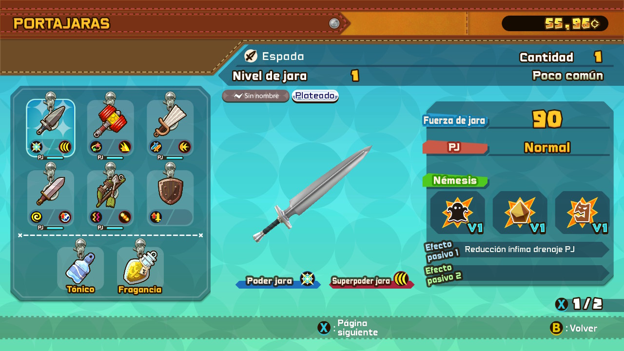 Cada una de las mazmorras de esas tres mazmorras que pertenecen a una misión principal, o de historia, se divide a su vez en tres fases. Durante nuestra cacería será conveniente saber qué equipo llevamos encima puesto que según que armas usemos afectaran más a unos enemigos que a otros. El sistema de combate en Snack Word es bastante dinámico en este sentido, esas armas de las que venimos hablando aquí toman el nombre de jaras y se dividen en diferentes categorías como pueden ser espadas, hachas, martillos, varitas, arcos o mazos, entre otras. Estas estarán disponibles en un apartado del menú llamado portajaras, donde podemos seleccionar inicialmente seis, aunque posteriormente podremos ir aumentándolo.