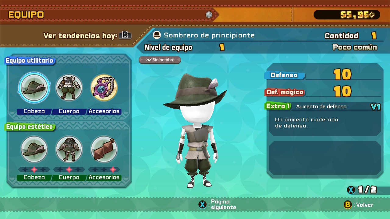 Las armaduras y equipos defensivos también jugaran un papel importante, sobre todo en los compases más avanzados del juego. Tendremos un catálogo bastante amplio de armaduras, ropajes y accesorios a nuestra disposición. Estos se pueden conseguir de dos formas diferentes; por un lado tendremos algunas tiendas donde podemos comprar estos elementos por medio de garbanzos, la moneda oficial del videojuego, pero también tendremos la opción de fabricarlos desde nuestro menú, para ello necesitaremos algunos elementos que podremos conseguir en las diferentes mazmorras del juego. Añadir también que todos estos elementos, al igual que las armas y los objetos de curación, pueden ser mejorados invirtiendo objetos que vayamos recolectando a lo largo de nuestras aventuras.