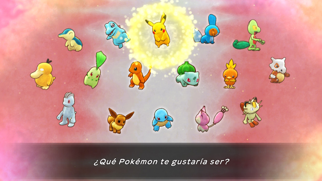 Nada más comenzar nuestra aventura en Pokémon Mundo misterioso: equipo de rescate DX se nos presentará una serie de preguntas en forma de test para determinar en que Pokémon nos encarnaremos. Dependiendo de nuestras respuestas, se nos asignará un Pokémon u otro, aunque siempre podemos seleccionar manualmente uno de los 15 que se incluyen en esta aventura si no nos gusta el que nos han propuesto.