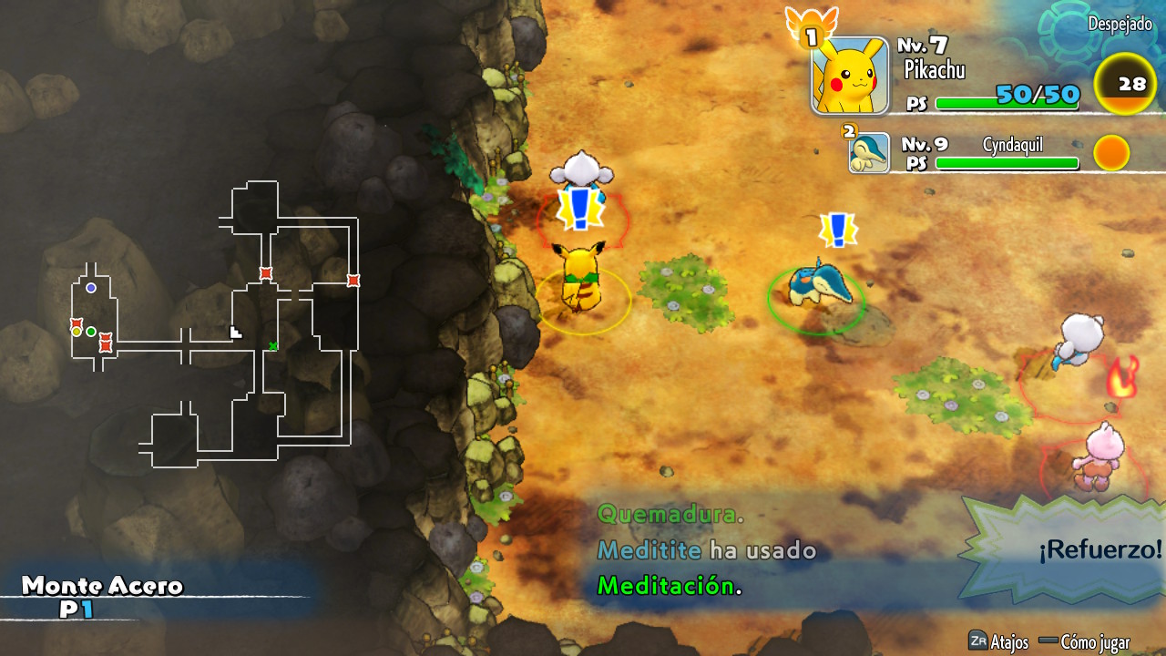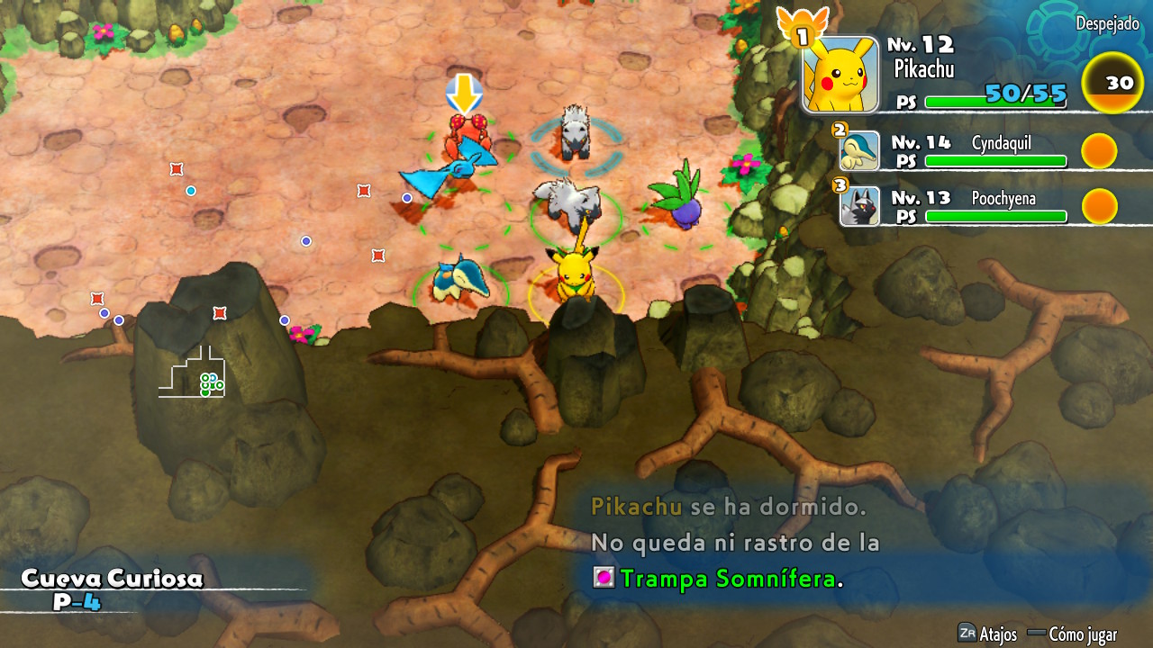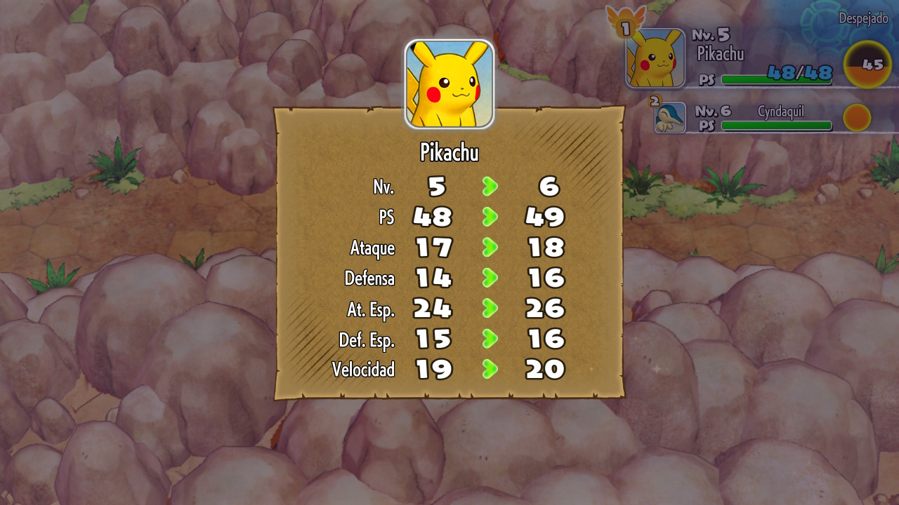 Nuestras acciones y las de los Pokémon que se encuentran en cada una de las mazmorras estarán coordinadas, por así decirlo. Cada vez que nuestro equipo de rescate se mueva los rivales también lo harán; bien hacia nosotros o a otros lugares del escenario. Algo similar ocurre durante los combates, creándose unos turnos de acción en los que podremos realizar ataques en combate o uso de objetos. Por su puesto, al igual que otros juegos de la franquicia, cada vez que derrotemos a algún enemigo obtendremos puntos de experiencia y los Pokémon de nuestro equipo subirán de nivel. Y es que realmente el sistema de combate, debilidades y movimientos, que todos conocemos se reflejará inalterable por lo que deberemos tener en cuenta el escenario en el que nos estamos moviendo y los tipos de Pokémon que lo habitan para llevar aquellos miembros que más efectivos sean contra ellos.
