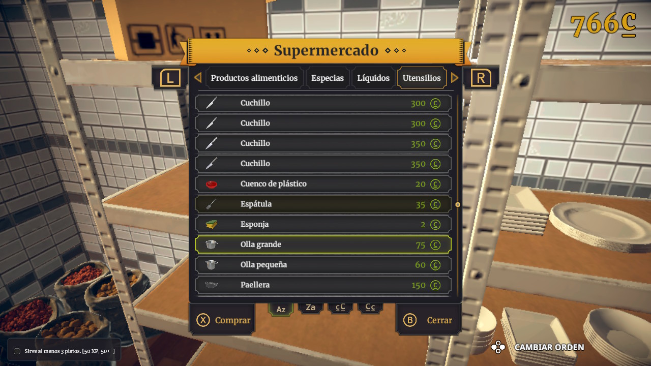 Los productos y utensilios los podremos comprar a través de la despensa y el frigorífico, en el que aparecerán expuestos los ingredientes de las recetas que hayamos desbloqueados. También podremos acceder al supermercado a través de las cajas de la despensa.