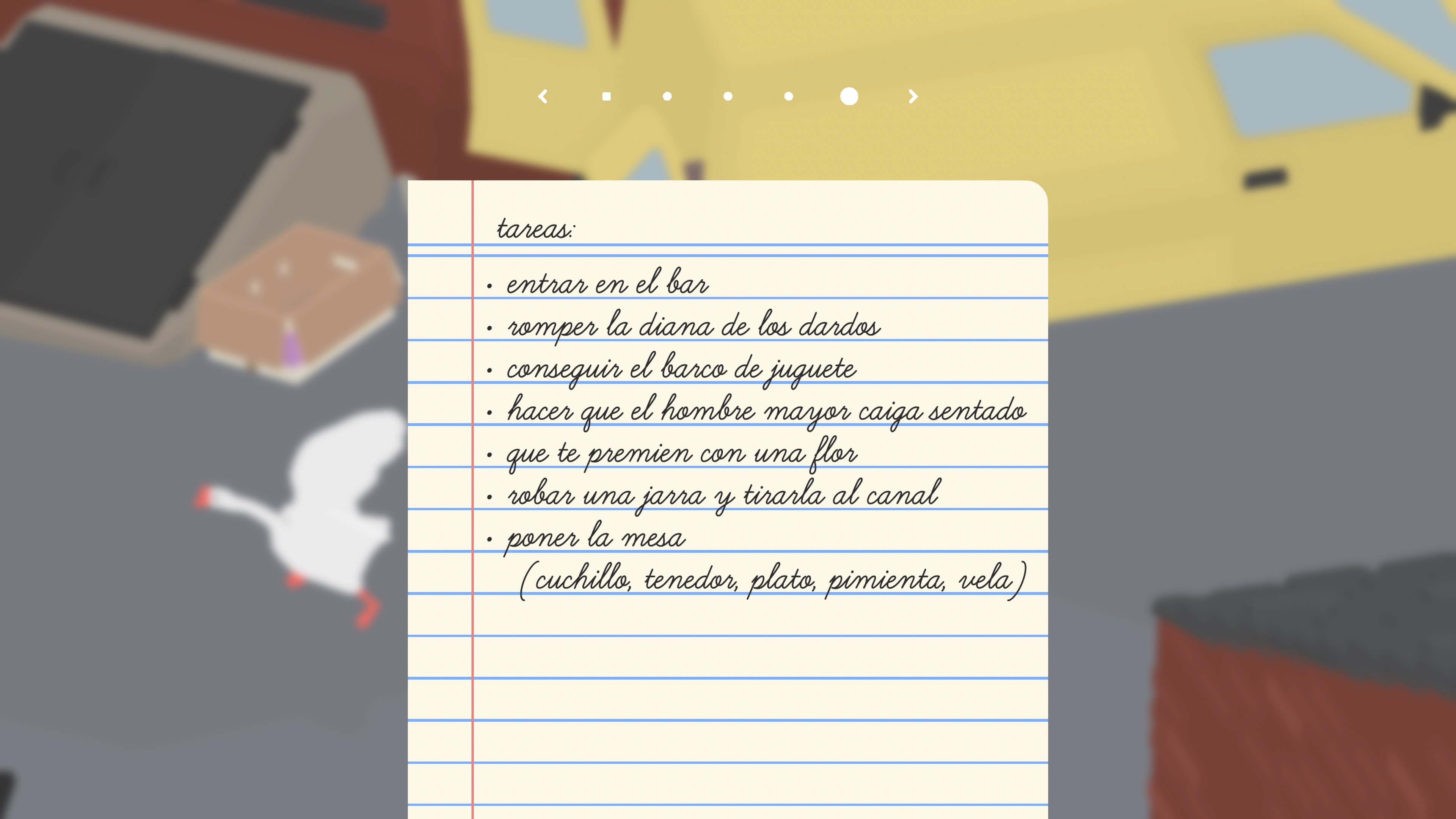 Pero claro, el verdadero protagonista es el ganso, o más bien los dos gansos que podremos controlar en esta actualización. Estos pequeños plumíferos se diferencian entre ellos principalmente en la forma y el color de su pico, además de en sus graznidos. Sus movimientos son muy dinámicos y, gracias al sistema de físicas del juego, podrán interactuar con prácticamente todos los elementos del escenario.