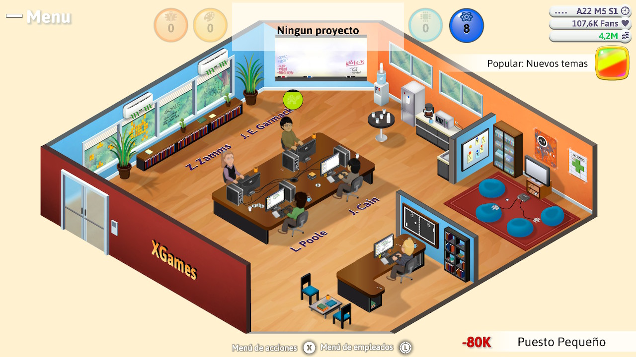 En cuanto a nivel de rendimiento, Game Dev Tyccon se desenvuelve perfectamente en Nintendo Switch, tanto a usándola en modo portátil como en el dock. No es un juego que haga alardes de unos gráficos a la última, estamos hablando de un juego cuyo lanzamiento inicial se produjo hace unos añitos ya y, aunque se nota que en este aspecto se ha actualizado, el resultado no es todo lo actual que pudiera haber sido desarrollado desde cero en estos momentos. De igual manera tenemos que señalar que no es un juego demasiado sofisticado en lo artístico, bien pudiera pasar por un sencillo juego de smartphone o flash de internet, como aquellos que hace años dominaban algunas redes sociales como Facebook.