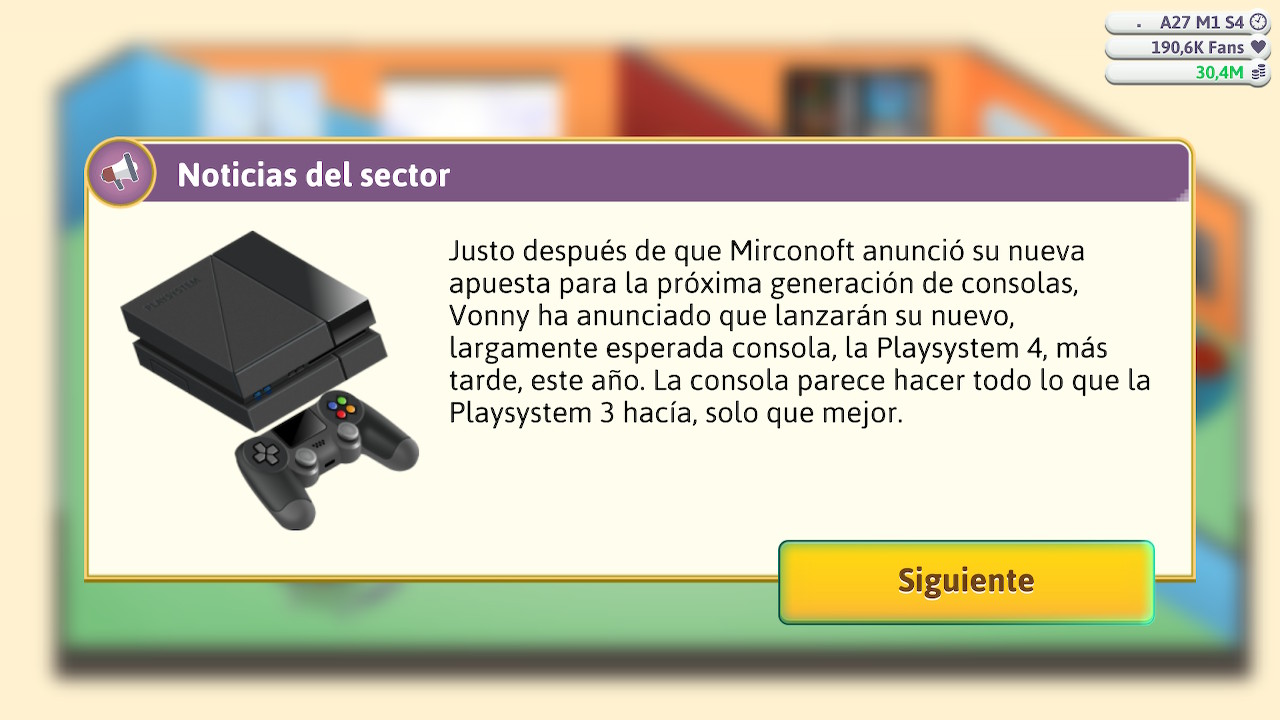 Algo parecido pasa con el audio. El apartado sonoro no es demasiado abundante, el número de canciones que sonarán es bastante limitado, y estarán únicamente para acompañarnos en nuestra aventura de una manera ambiental. Lo que sí es un gran punto a su favor es que el juego este localizado a nuestro idioma ya que podemos conocer un poquito más de historia y cómo la industria veía el lanzamiento de cada una de esas consolas que iremos conociendo, o rememorando, a través de nuestra carrera como desarrollador.