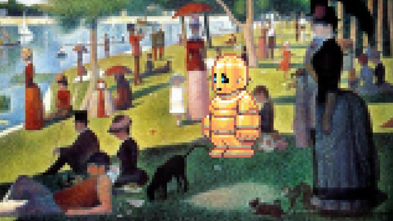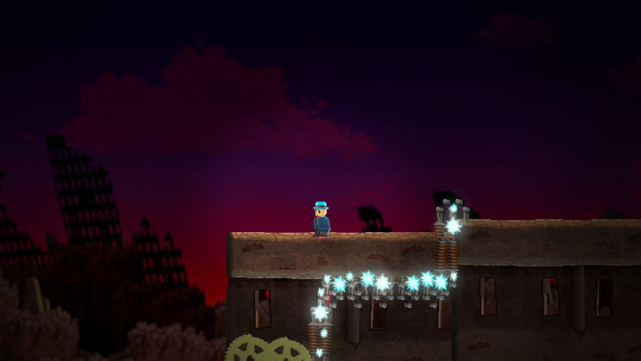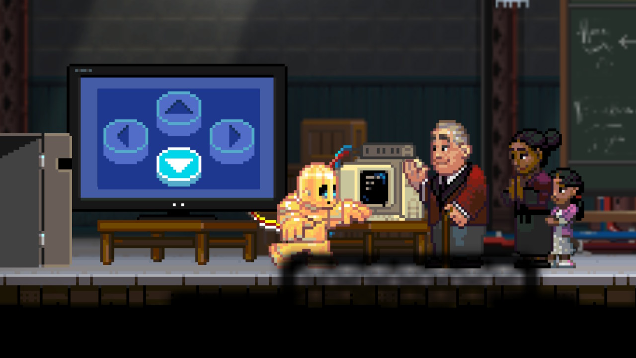 Con una estética pixel art muy cuidada, Horace presenta un estilo artístico que funciona realmente bien. Todo en el juego está pensado para que tenga algún uso conforme avancemos en la historia y consigamos nuevas habilidades. El diseño de los diferentes personajes se materializa por medio de unos pixeles bastante grandes pero que conforman un aspecto final bastante definido y atractivo. Horace es el protagonista supremo y al que veremos prácticamente siempre en pantalla. Su diseño es bastante acertado, si bien es cierto que al principio no es llamativo, el vestir a este pequeño robot con ropa y bombín como si fuera una persona hace que gane personalidad.