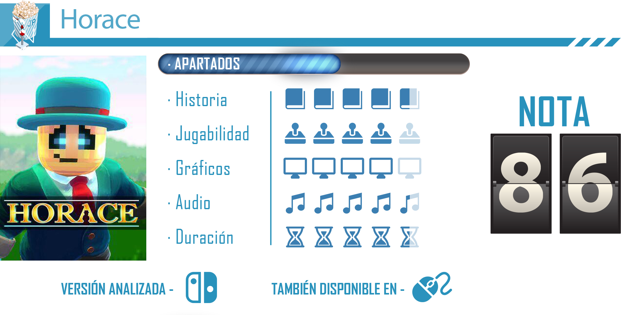 Horace es más que un videojuego, es toda una experiencia que recomendamos sin lugar a dudas. La obra de Paul Helman tiene una propuesta única y trasgresora donde se combinan diferentes mecánicas, puzles y minijuegos, en un alarde de genialidad. Todo esto se remata con un sobresaliente estilo artístico y con una banda sonora que logra trasmitir y hacer que el jugador empátice con ese emotivo viaje que el pequeño Horace llevará a cabo.