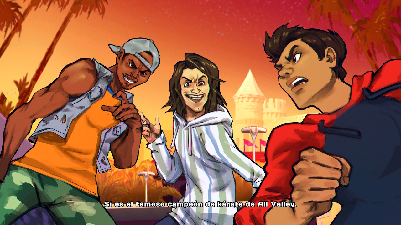 En cuanto a su argumento, seguirá la línea del presentado en la serie. Los constantes piques entre los sensei de los dos dojos nos llevarán a explorar distintos barrios, escenarios o tiendas de la ciudad de Los Ángeles, estando muy presentes algunos escenarios vistos en la propia serie. La historia, como viene siendo algo típico de este género, no es lo primordial, pero se nos hace realmente interesante ya que sirve para quitarnos el gusanillo mientras esperamos el estreno de la tercera temporada, por lo que en nuestro caso nos ha parecido bastante entretenida. Serán constantes guiños los que aparecen durante el transcurso de la aventura, se nota que es una serie enfocada para el fan, y esto es una baza que GameMill y Flux Games han sabido jugar muy bien.