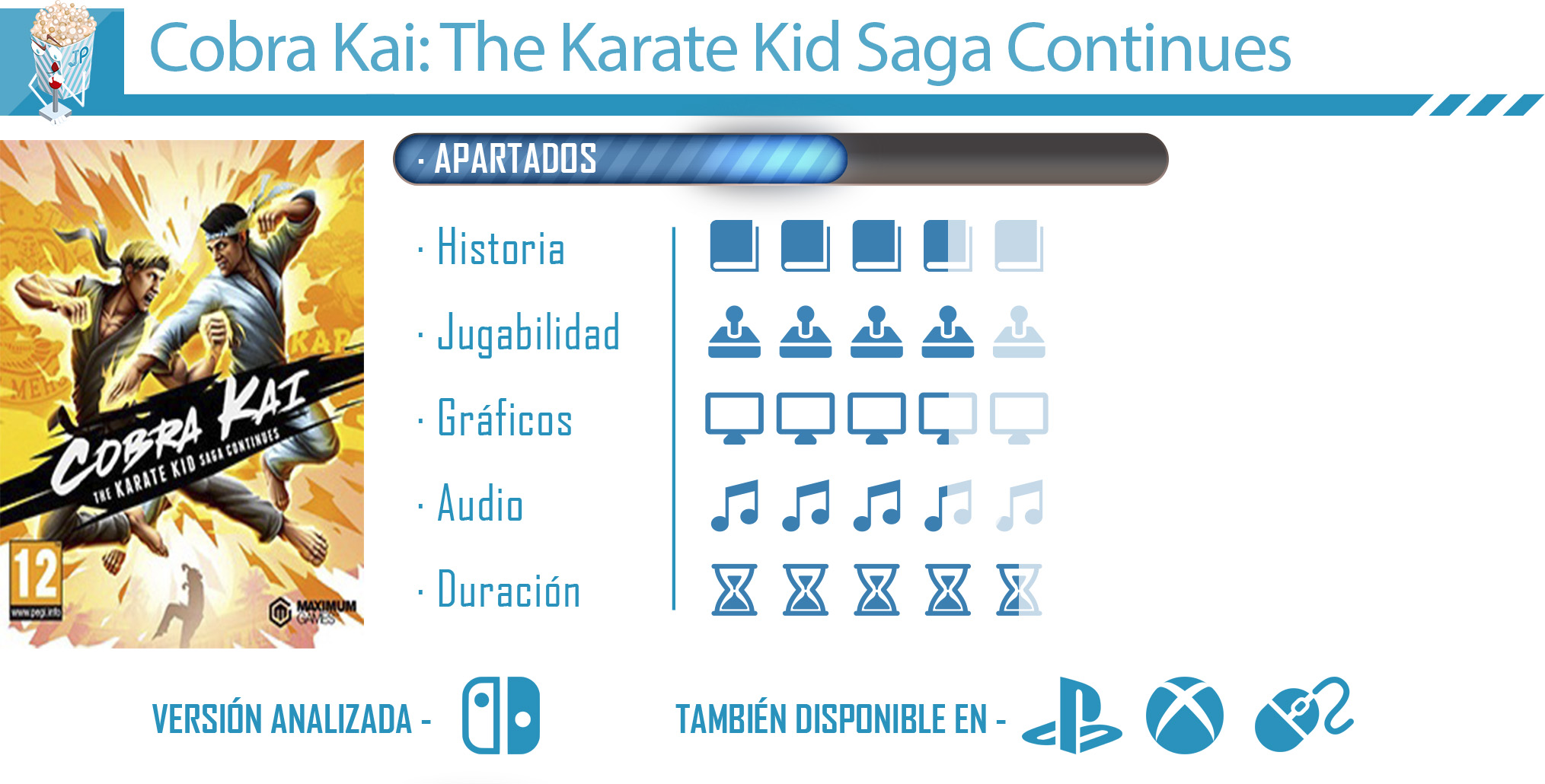 Lo que hay que aplaudir a GameMill y Flux Games es que no se han conformado con sacar un título aprovechando el tirón mediático y el fenómeno fan de la serie, sino que es un título que hace justicia a la misma, en el que nosotros mismos podremos vivir una historia inédita y continuar con la disputa entre los dojos de Cobra Kai y Miyagi Do.