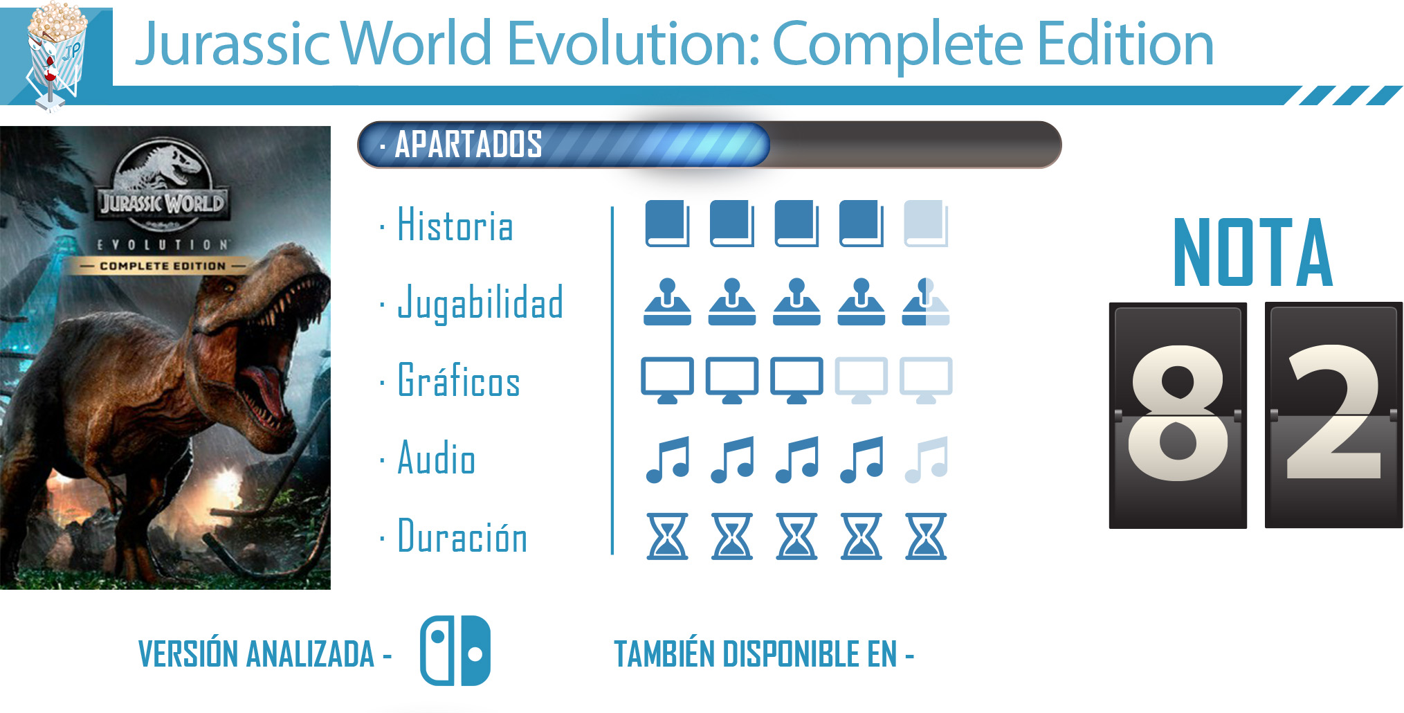 La edición completa que ya se encuentra disponible para Nintendo Switch es una buena oportunidad para adentrarnos en el universo de esos seres gigantes y disfrutar de todo el contenido original y de los DLC que posteriormente salieron al mercado. Un juego notable que, pese a algunos de sus pequeñas carencias técnicas en esta versión, cumple y se desenvuelve muy bien en la híbrida de Nintendo y que satisfacerá por igual a los fans de este género y a los seguidores de las ya míticas películas del universos Jurassic Park.