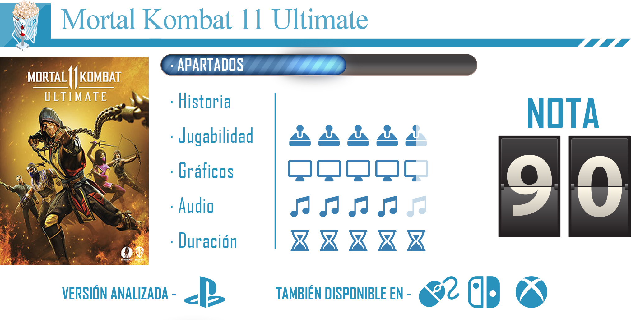 Recapitulando, la versión de Mortal Kombat 11 Ultimate que vamos a analizar, y que se encuentra disponible para todas las plataformas actuales de juego, tanto las de nueva generación como las de la ya pasada, incluyen: