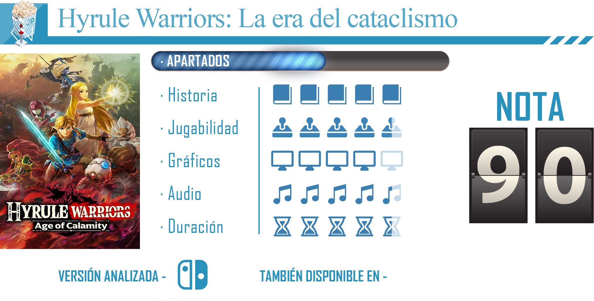 Hyrule Warriors: La era del cataclismo nos ha parecido una sobresaliente entrega dentro del universo Breath of the Wild que enamorará a los fans de la saga desde el primer momento gracias a su alternativa historia que profundiza en algunos de los momentos clave a modo de precuela de esa entrega. Si bien es cierto que puede que los jugadores que no sean demasiado fans de los Musou se van a acercar a él con cautela, hemos de decir que a nosotros nos ha encantado su formula desde el primer momento, aunque hemos de señalar también algunos problemas técnicos que, aunque están ahí y en algunos momentos son algo notorios, no desmerecen a una obra prácticamente imprescindible para todos los amantes del universo de The Legend of Zelda.