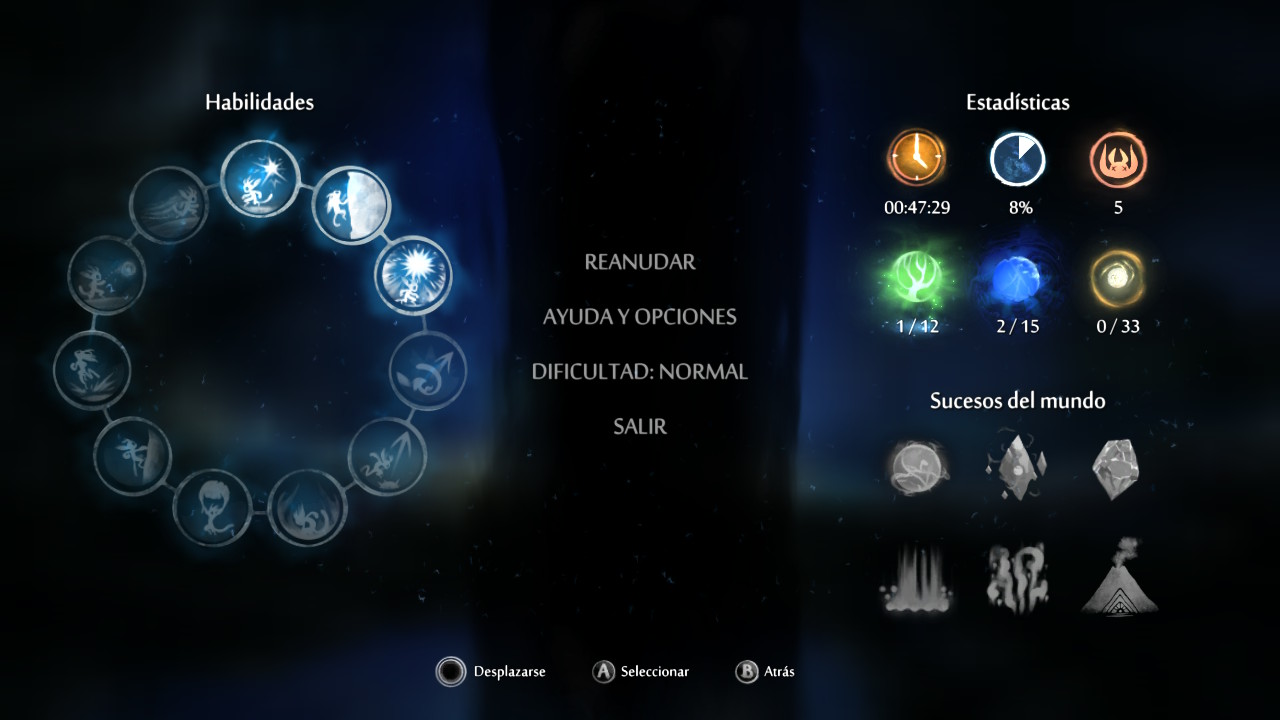 Como buen metroidvania la muerte será precisamente una constante. Hemos de decir que Ori and the Blind Forest no es precisamente un juego sencillo y en más de una ocasión vamos a morir. Es un juego que se basa en el aprendizaje y en el ensayo y error; conocer el patrón de movimiento de los enemigos, sus ataques o que hace cada cosa que se encuentra en el escenario será fundamental para logar nuestra supervivencia. Por ello recomendamos contar con suficiente energía ya que con ello podremos crear un vínculo de alma y así crear esos puntos de control para salvar nuestro progreso ya que en ocasiones los obstáculos se vuelven prácticamente demenciales y puede llegar a agotar nuestra paciencia.