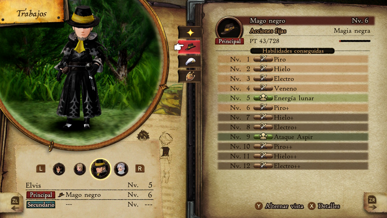 Al igual que nuestros personajes, estos trabajos pueden subir de nivel y, a medida que lo hagan, se irán desbloqueando desde habilidades propias de cada clase, como aquellas que pueden equiparse de forma permanente. Cada personaje puede tener una clase principal y una secundaria de refuerzo que le permite realizar las acciones de este trabajo; podemos tener un guardia y como secundaria un mago blanco que nos permitirá utilizar la magia blanca para sanarnos, por ejemplo. Además de eso, cada personaje tiene unas ranuras en las que podemos equipar unas habilidades activas como mayor daño sin armas, consumir menos PM en las habilidades, etc. Las posibilidades que ofrece este sistema es enorme y por eso insistimos en la importancia de ir probando y mejorando los trabajos, pues si bien quizá no nos guste muchos sí que puede darnos una habilidad muy útil para otra clase.