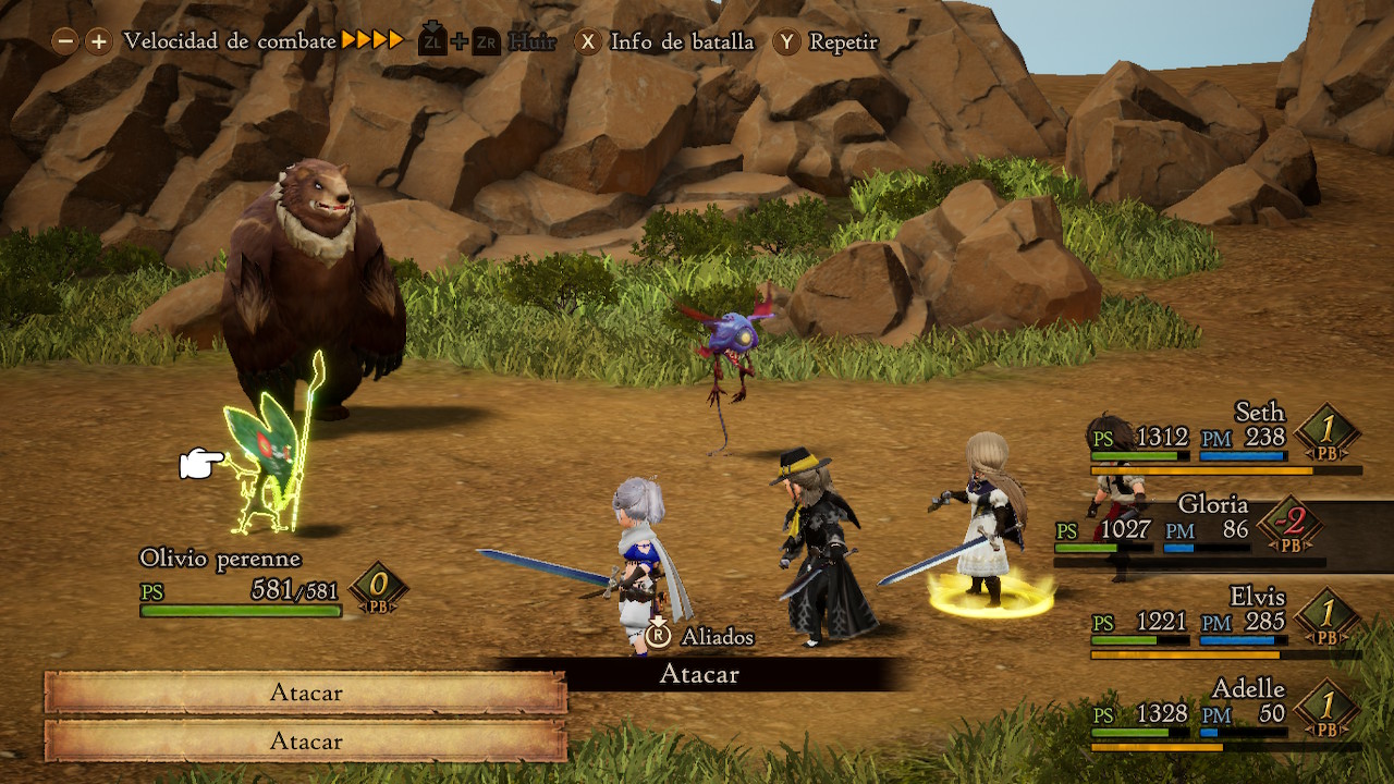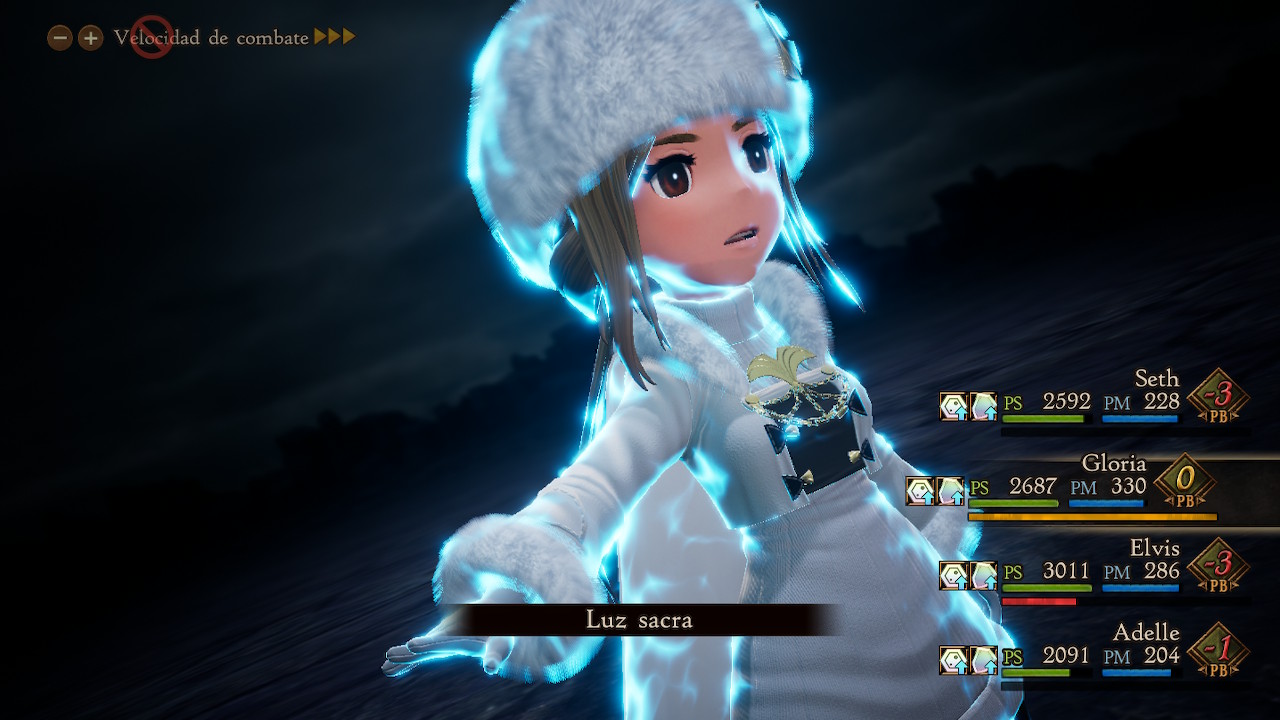 El sistema Brave y Default aporta un toque más táctico e interesante en el que podemos elaborar diversas estrategias en función de nuestros personajes y sus trabajos. Podemos ir a saco con los más fuertes y encadenar cuatro ataques sucesivos, o bien ir poco a poco y guardar turnos, como por ejemplo con el mago blanco para poder utilizar varias acciones de curación en el siguiente turno. La prioridad de los turnos se hará a través de la típica barra de tiempo que se ira llenando a diferentes velocidades.