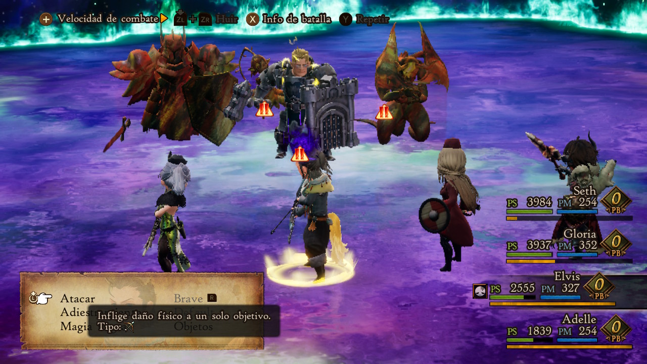 Quitando sus peculiaridades, el resto del combate se desenvolverá de una forma similar a cualquier otro JRPG, a excepción de otra particularidad; al igual que la magia, las armas también jugarán un desempeño importante a la hora de atacar y de reflejar ese daño. En la mayoría de los juegos del género estamos acostumbrados a las clásicas mecánicas de magia y como algunos enemigos pueden ser vulnerables a la magia o resistente e incluso puede devolverles salud, pero no estamos tan al tanto esto mismo pero aplicado a las armas. Esto aparece en Bravely Default II ya que tendremos que tener muy en cuenta nuestro equipo y las vulnerabilidades de los enemigos ya que, aunque nuestro sentido común nos diga que es más útil una espada que un bastón, esto no es siempre así, ya que existen ciertos enemigos que son débiles a ellos.