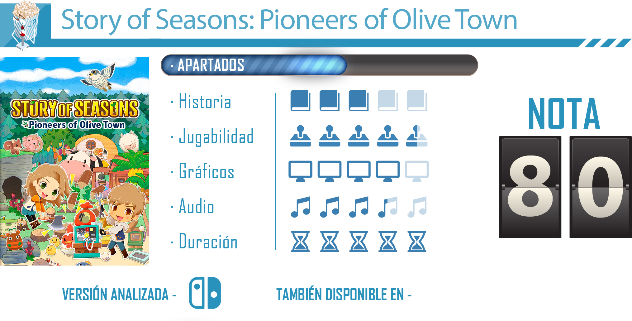Story of Seasons: Pioneers of Olive Town es un título de nicho para los fans de la franquicia. Es una aventura que ha sabido evolucionar respecto a entregas anteriores y que ha logrado convencernos con las posibilidades que ofrece. Las novedades que llegan son lo bastante interesantes como para tenernos enganchados en villa Oliva mientas desentrañamos sus mágicos misterios, pero también hemos de decir que es un juego que necesita paciencia y dedicación y que, para los que no son asiduos de este tipo de aventuras, puede hacerse algo tedioso debido a su línea de progreso.