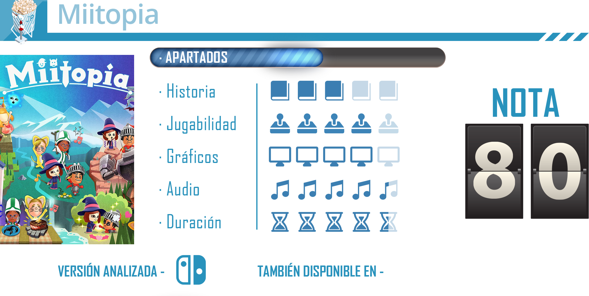 Su peculiar propuesta no era nueva puesto que una premisa similar ya se pudo ver en Tomodachi Life, pero esta vez enmarcado dentro de los social life. Ahora, años después, Nintendo rescata Miitopia y lo lanza para Nintendo Switch, para que aquellos que no tuvieron oportunidad de disfrutarlo, o simplemente quieran volver a vivir esa aventura de fantasía, puedan hacerlo en la última consola de la Gran N, con algunos añadidos y mejoras visuales que le sientan realmente bien.