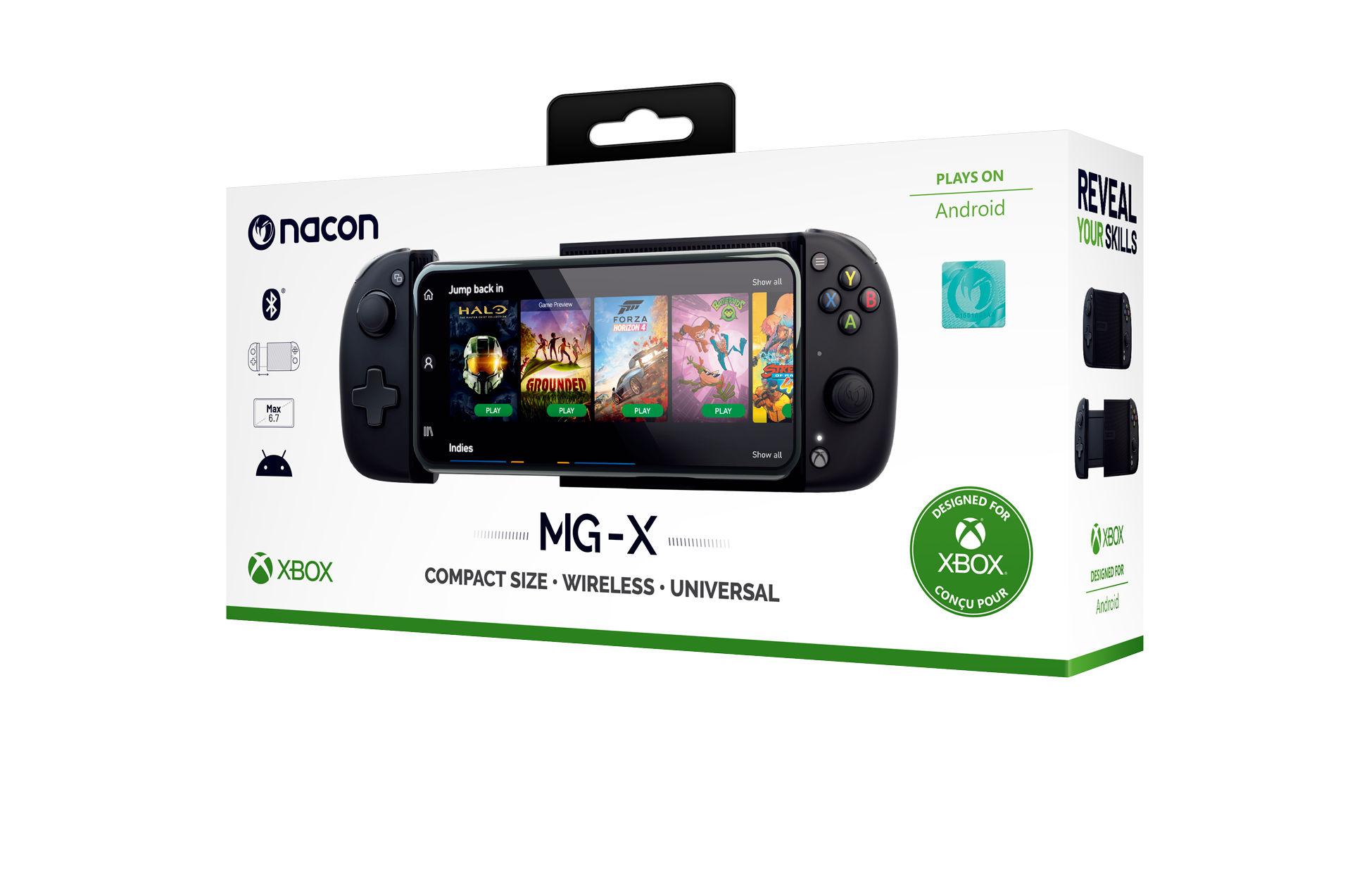 Con la misma funcionalidad que los mandos oficiales, el MG-X permite a los fans de Xbox disfrutar de un nivel de confort mejorado con cada smartphone Android cuya pantalla sea de hasta 6,7 pulgadas. En unos pocos toques, el smartphone integra el MG-X e inalámbricamente (Bluetooth 4.2) se conecta al mando. Equipado con una batería recargable, el MG-X proporciona hasta 20 horas de batería ininterrumpidas. Su formato compacto hace que sea fácilmente transportable, mientras que su textura rugosa trasera proporciona la mejor ergonomía para todo tipo de jugadores.