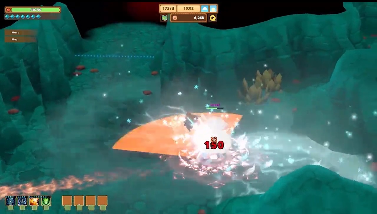 Como hemos visto la parte de farming y de vida en la granja es bastante completa, pero pasemos a la parte de exploración y de combates, las cuales se complementan muy bien e introducen el factor de acción del juego. Al comienzo de la aventura recibiremos una espada que nos servirá para hacer frente a los primeros peligros que nos acecharan en nuestro camino. Miaurgan tendrá los tipos movimientos básicos para enfrentarse a ellos, s como son atacar con diversos combos o rodar para esquivar un golpe de los rivales.