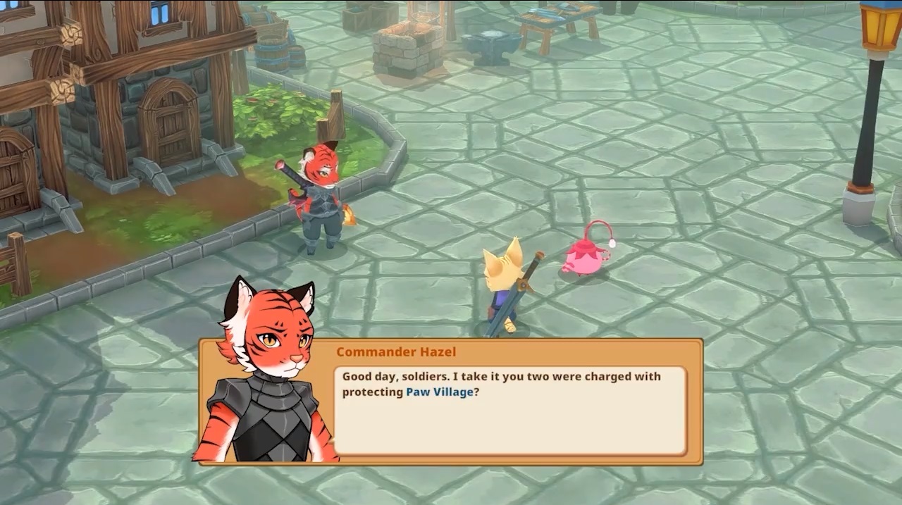 El comienzo de nuestra travesía tendrá lugar en Villa Patitas, ese pequeño pueblo que ha sufrido las consecuencias de la Catástrofe. Aquí vamos a conocer algunos de los habitantes que nos van a dar unas nociones básicas del juego: como movernos o atacar, para que podamos, espada en mano, empezar a recorrer su mundo. Pero lo más importante es que aquí contaremos con nuestra propia casa, un pequeño lugar a cual podemos llamar hogar desde el cual podemos realizar algunas acciones, como cambiar el aspecto de Miaurgan, su pelaje y los elementos estéticos que porta, además de realizar otras acciones propias de un hogar, como descansar.