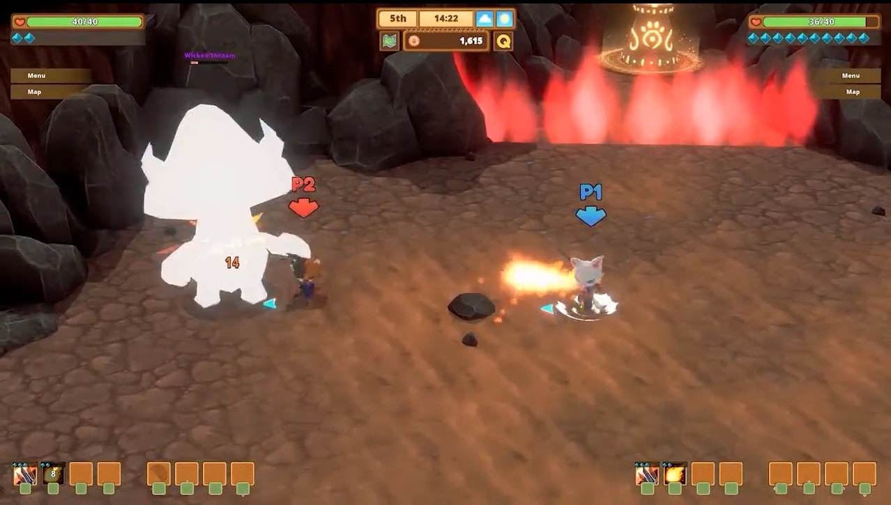 Aunque lo interesante en Kitaria Fables es que no estaremos solos, si no queremos. El juego cuenta con un modo cooperativo local que nos da la oportunidad de completar la aventura junto a un compañero o compañera, de esta manera los combates y las acciones de farmeo serán más amenas y rápidas. Con esta mezcla de elementos, Kitaria Fables es un juego largo que nos absorberá perfectamente unas 20 o 30 horas.