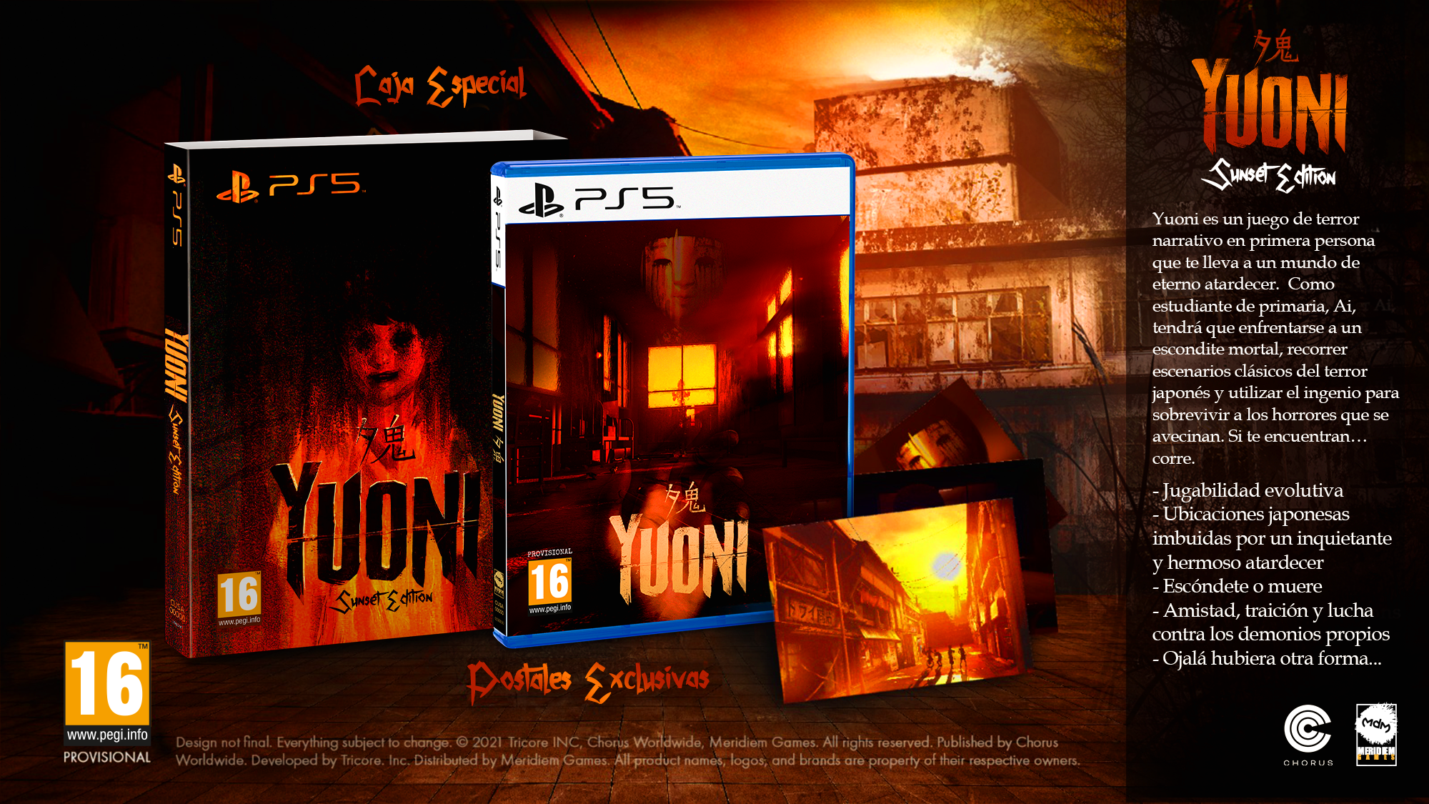 Meridiem Games ha anunciado hoy que Yuoni, el escalofriante juego de terror en primera persona basado en una trágica historia, desarrollado por Tricore Inc, y publicado por Chorus Worldwide Games, llegará en formato físico mediante una edición especial el próximo 3 de diciembre del 2021 en la plataforma PlayStation 5.