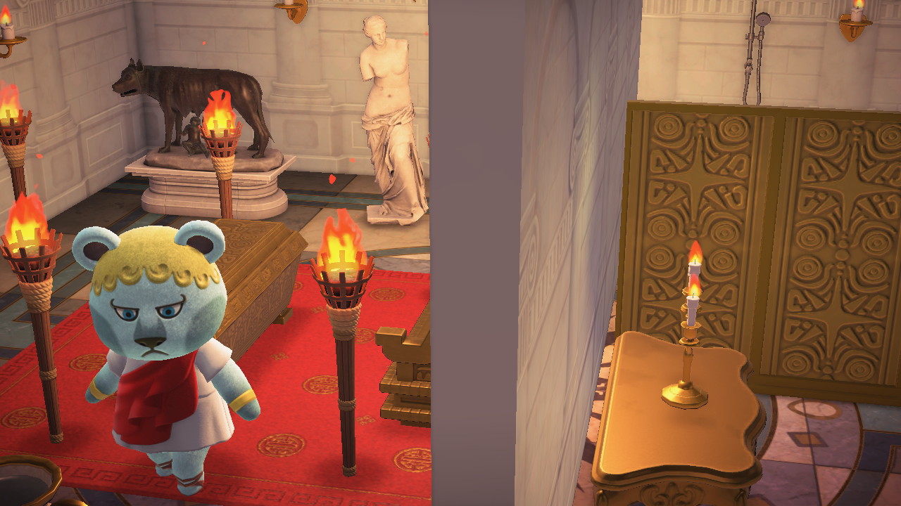 A la larga, puede que la función de decorar las casas llegue a hacerse algo monótona, sin embargo, el juego nos da una sensación de progresión al dotarnos de más herramientas y opciones progresivamente que nos permite ir variando la manera en la que jugamos. Por ejemplo, en principio tenemos un espacio limitado, pero a medida que avanzamos podemos ampliar el tamaño de las casas o poner tabiques para crear diferentes estancias. Además, podremos dar efectos a los objetos para dar la sensación de que están pulidos con brillo, que sueltan humo, chispas, etc… Todos estos detalles hacen más complejo y completo a la experiencia base que New Horizons nos proponía.