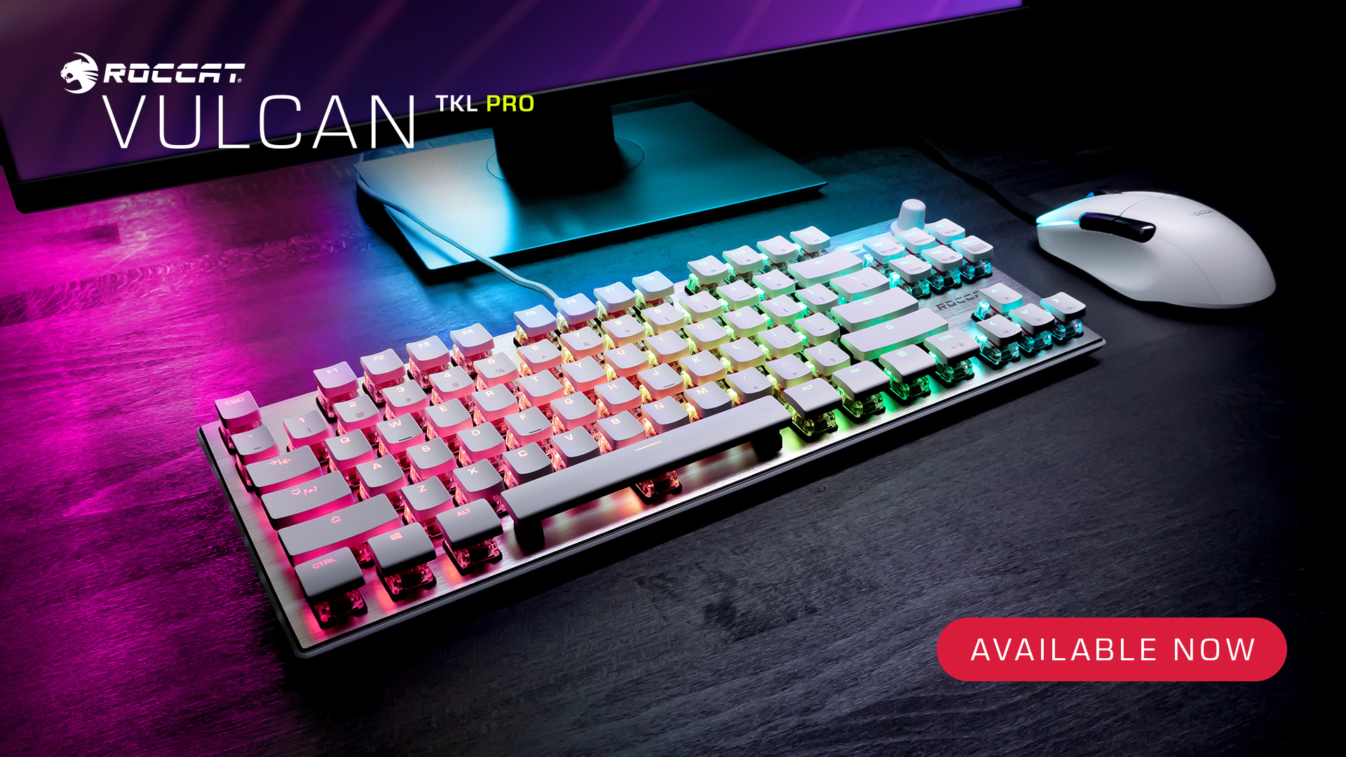 El Vulcan TKL Arctic White también cuenta con la atractiva iluminación AIMO RGB de ROCCAT y está disponible hoy en www.roccat.com y minoristas participantes de todo el mundo por un PVPR de 159.99 €.