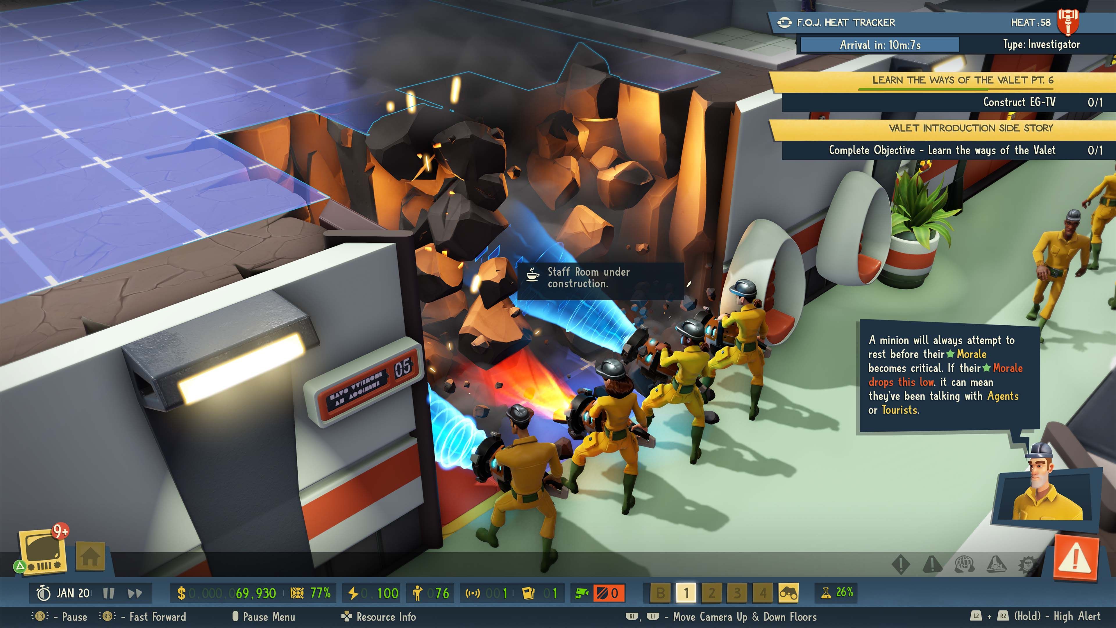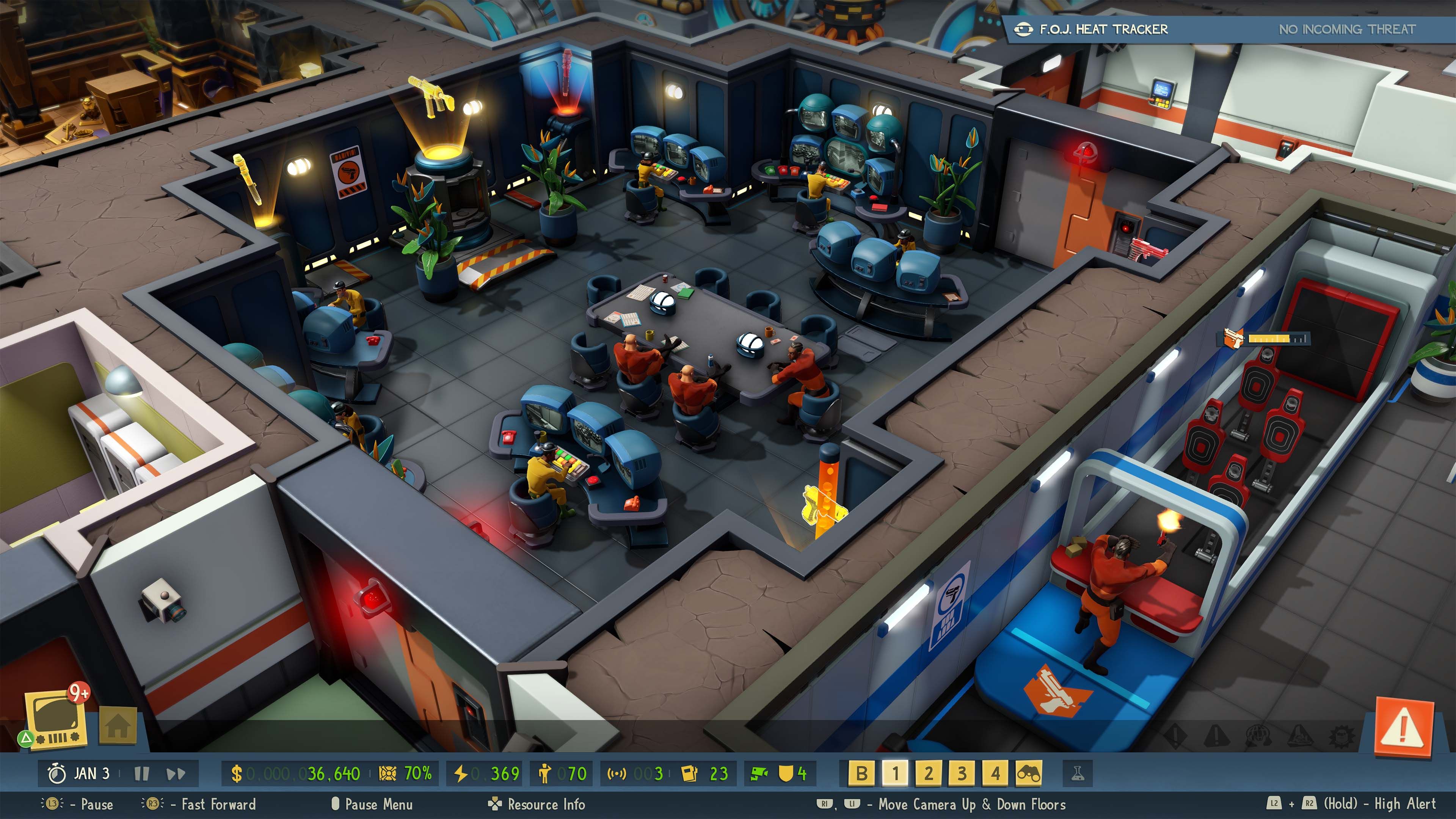 Eso sí, ninguna malvada acción queda sin castigo y en Evil Genius 2 World Domination esa pesquisa se cumple, o al menos se intenta. A medida que vamos llevando a cabo nuestras acciones, nuestro nivel de notoriedad irá aumentando, por lo que comenzaremos a llamar la atención de las fuerzas del bien. Estos podrán incluso mandar a investigadores o agentes encubiertos que tendrán como finalidad acabar con nuestros planes. Para evitar que el bien triunfe sobre el mal, podremos emplear diferentes elementos: de nuevo podremos hacer que nuestros esbirros distraigan a estos agentes de la ley, pero, puede resultar más entretenido, y también más maquiavélico, llenar nuestra base de trampas para que esos investigadores caigan en ellas.