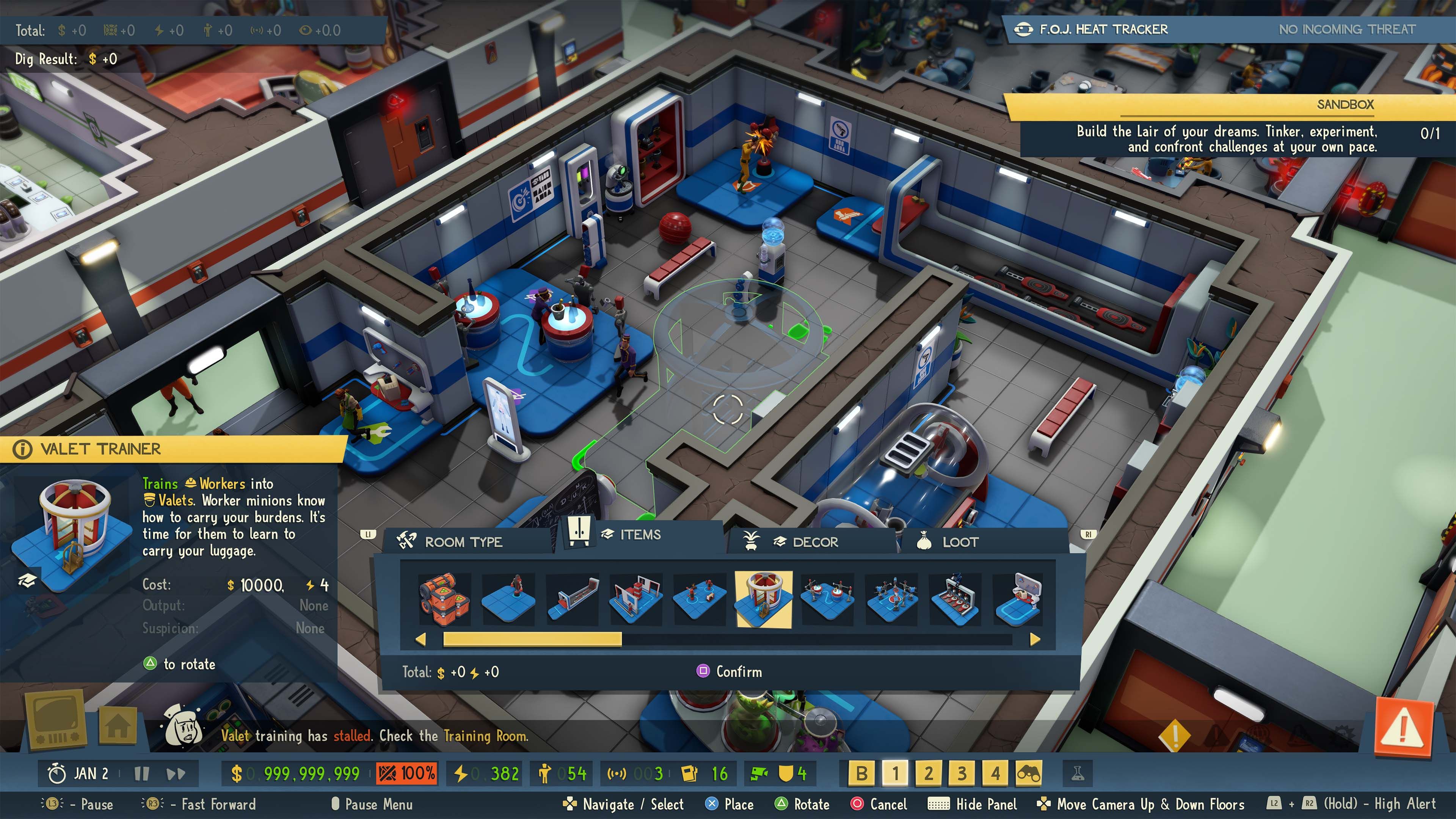 Pero, como hemos adelantado, la verdadera “magia” no tendrá lugar en el casino, sino en esa otra zona oculta al público en su trastienda o bajo ella: la guarida del mal. Aquí tendremos un espacio limitado sobre el que podremos actuar; podremos mandar a nuestros “ayudantes” construir nuevas salas que tendrán algunas funcionalidades para llevar a cabo nuestros planes. Algunas de estos son salas de reuniones, salas para maquinarias, salas de reuniones, u otro tipo de habitáculos que sirvan para nuestros planes.