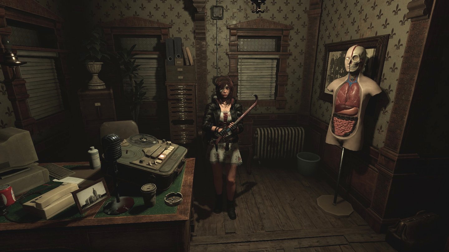 En los clásicos podemos encontrar esas raíces que se transportan a la obra de Dual Effect Games. La acción y los combates contra esos seres y abominaciones viscerales que pueblan la mansión/hospital están basados de esos primeros Resident Evil. Esto se traduce en tener botón de apuntado automático cuando estemos lo suficientemente cerca de los enemigos, y otro botón para disparar. De igual manera que Caroline no podrá desplazarse durante esta acción, al igual que sucedía con esos survival horror más nostálgicos, pero aquí también hay una excepción, y es que podrá realizar un movimiento de esquiva hacia atrás para evitar los golpes de los monstruos. Con esto se nos abre una posibilidad más a la hora de plantear los enfrentamientos ya que podremos eludir los diversos envistes, aunque hemos de tener mucho cuidado con los elementos que conforman el escenario ya que pueden jugarnos una mala pasada a la hora de realizar esta acción si chocamos contra ellos.