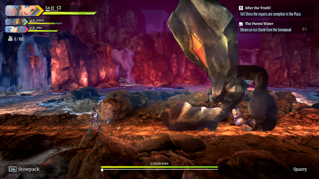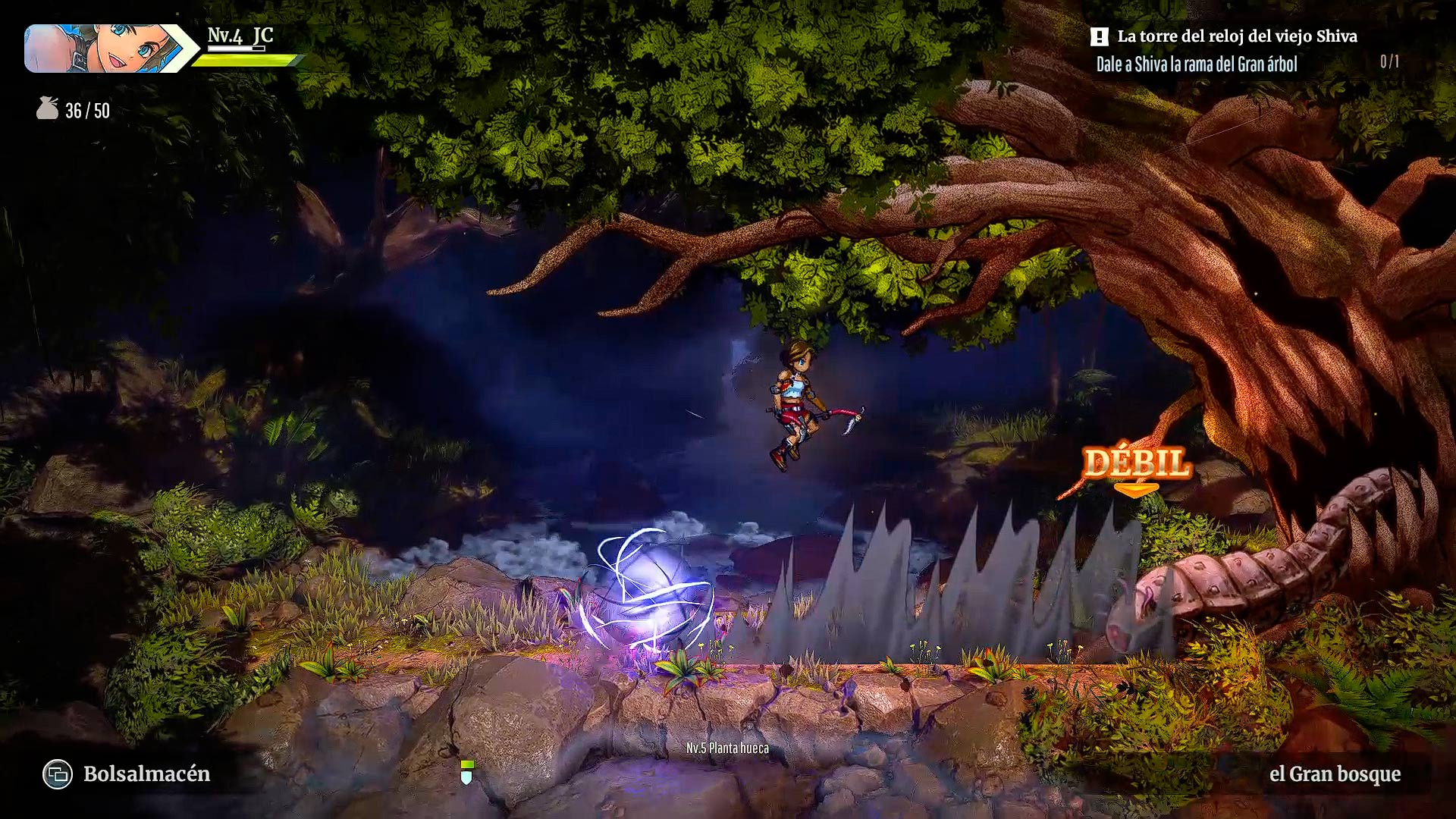 En lo que respecta a la exploración, tendremos seis zonas de un tamaño medio por las que podremos movernos para adquirir esos materiales y recursos que serán necesarios para las misiones. Aquí se intenta introducir, tímidamente, un componente de los metroidvania, haciendo que tengamos que ir una otra vez a el mismo mapa según vayamos avanzando y consiguiendo a los nuevos personajes. De esta manera, una vez que se hayan incorporado a nuestro grupo tanto Isha como Garoo, dispondremos de esas habilidades necesarias para explorar cada uno de los rincones del mapa y obtener algunos elementos que se encuentran escondidos.
