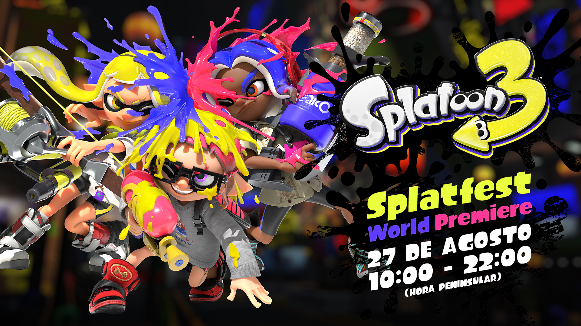 Splatoon 3: Splatfest World Premiere: Cualquiera que quiera zambullirse en Splatoon 3 antes del lanzamiento del juego el 9 de septiembre puede participar en el evento Splatfest World Premiere, que se celebrará el 27 de agosto. A partir del 18 de agosto será posible descargar en Nintendo eShop una versión de prueba gratuita para ello. Los jugadores podrán elegir su equipo (Piedra, Papel o Tijeras) hasta el 27 de agosto. Se podrá jugar a algunas partes de la versión de prueba el 25 de agosto, antes de que el festival dé comienzo a las 10:00 (hora peninsular) del 27 de agosto.