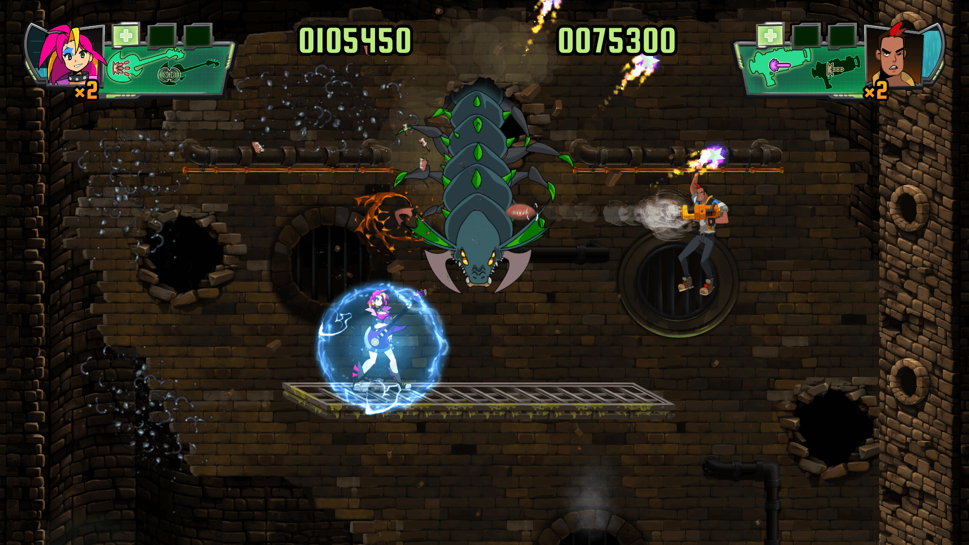 Para hacer frente a todos esos peligros y criaturas que nos acechan, podremos utilizar diferentes potenciadores que modificarán nuestra forma de disparar. Es interesante señalar que también que nuestros personajes podrán empuñar dos armas al mismo tiempo y que también existen distintos tipos de disparos: los clásicos, el disparo triple, el lanzagranadas, el disparo de metralleta, etc.