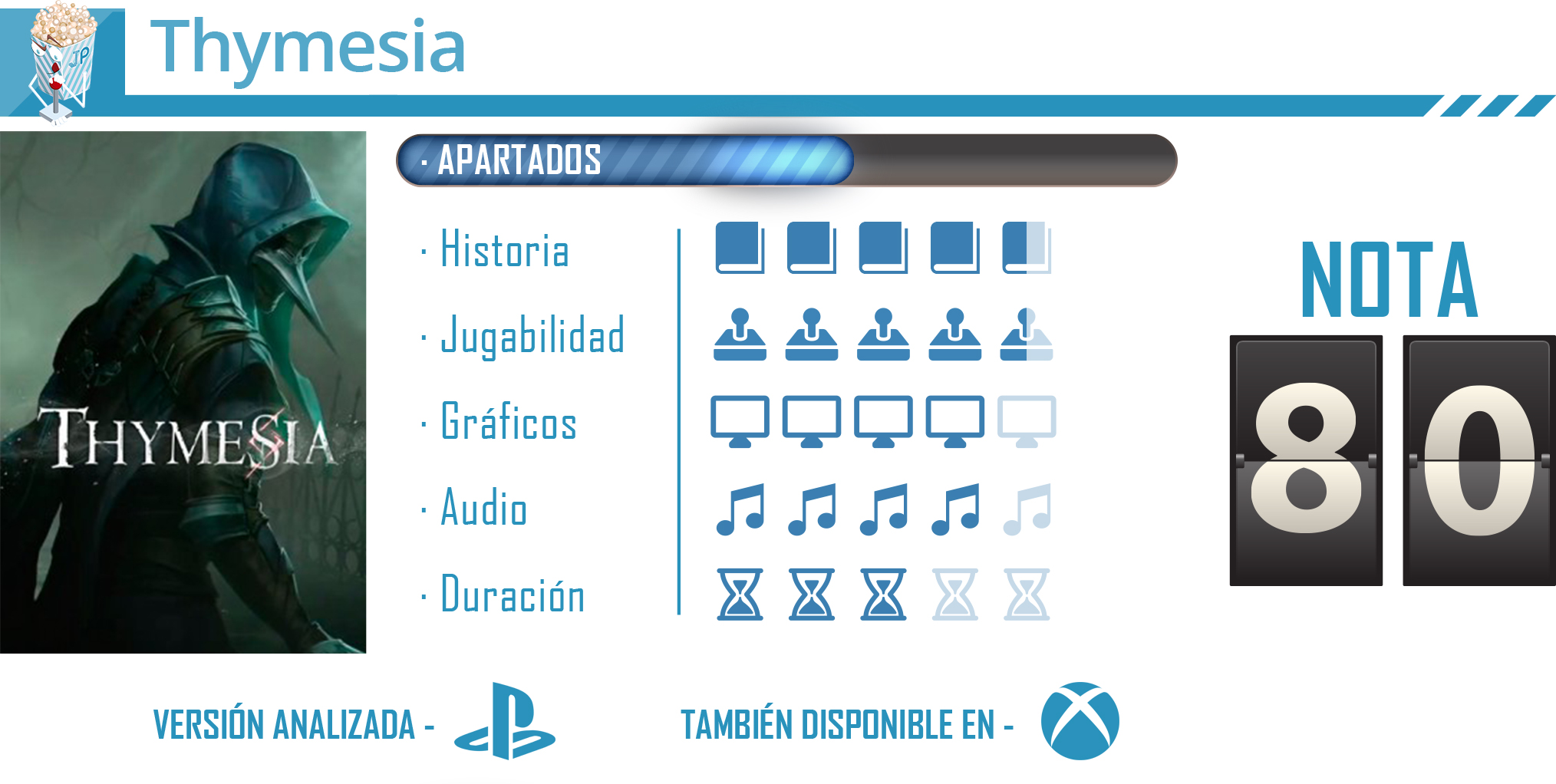 Thymesia no esconde sus influencias, pero OverBorder Studio ha sabido coger grandes parte de algunos de los soulslike más conocidos y exitosos hasta la fecha y ha creado algo único y muy característico. La aventura de Corvus se siente como algo fresco y divertido dentro del género, con un combate muy solvente, ágil y lleno de posibilidades y con unos enfrentamientos contra bosses realmente entretenidos. Su historia nos atrapará y su apartado artístico nos terminará de cautivar y, aunque tiene sus fallos, es un juego realmente interesante que nos desafiará y nos resultará especialmente satisfactorio a los fans de este género.