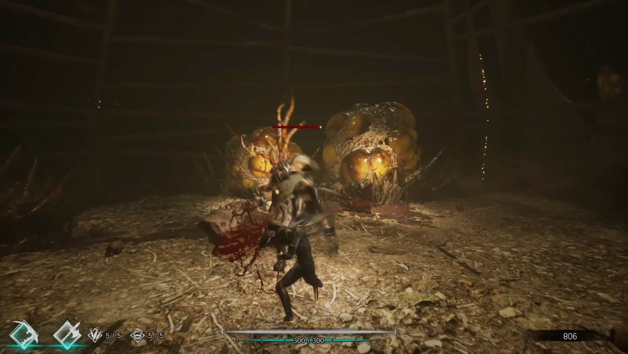 El combate en Thymesia está pensado para llevarnos al límite. Es un juego tremendamente ofensivo que nos obligará a que estemos atacando y acosando a nuestros rivales con los diferentes ataques que puede realizar Corvus. Pero aquí el título también tiene sus peculiaridades; el alquimista contará con dos armas principales para acabar con sus rivales: la primera será una espada, con la que podrá realizar esos ataques básicos y con la que irá reduciendo su barra de salud principal. Pero, junto con la espada, Corvus contará también con una garra infectada, un arma muy especial con la que podrá ir mermando la salud máxima de los rivales.