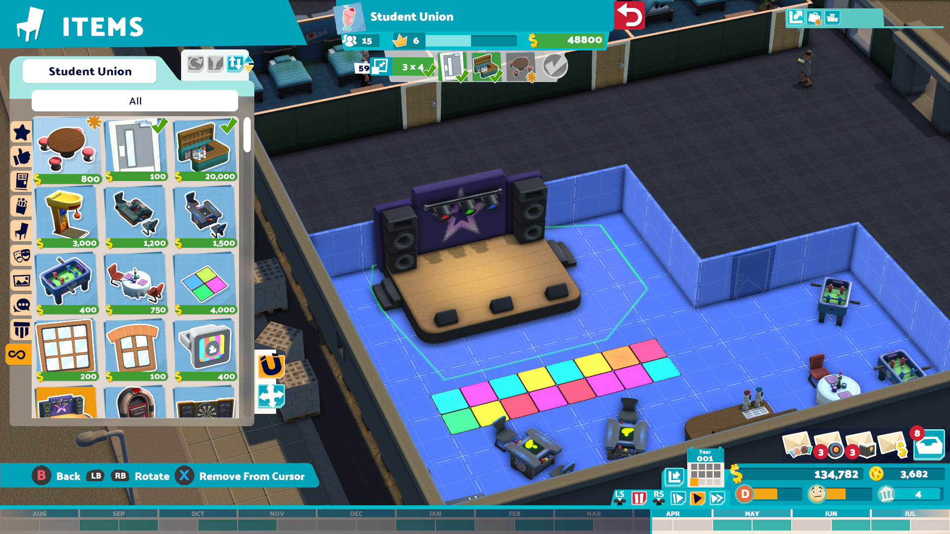 El gran problema es que estos requisitos se repiten continuamente y suelen ser bastante similares y monótonos. Por ejemplo, indican que tenemos que conseguir un nivel concreto en el campus y para ello acabamos construyendo habitaciones innecesarias solo para poder llegar a ese objetivo. Otro objetivo es conseguir un tanto por ciento de aprobados y para ello debemos contratar más profesores para clases particulares, y así con los demás. Esto es un problema cuando llevas mucho tiempo jugando porque da la sensación de monotonía y nos provoca tener que dejar el juego aparcado una temporada para retomarlo más tarde.