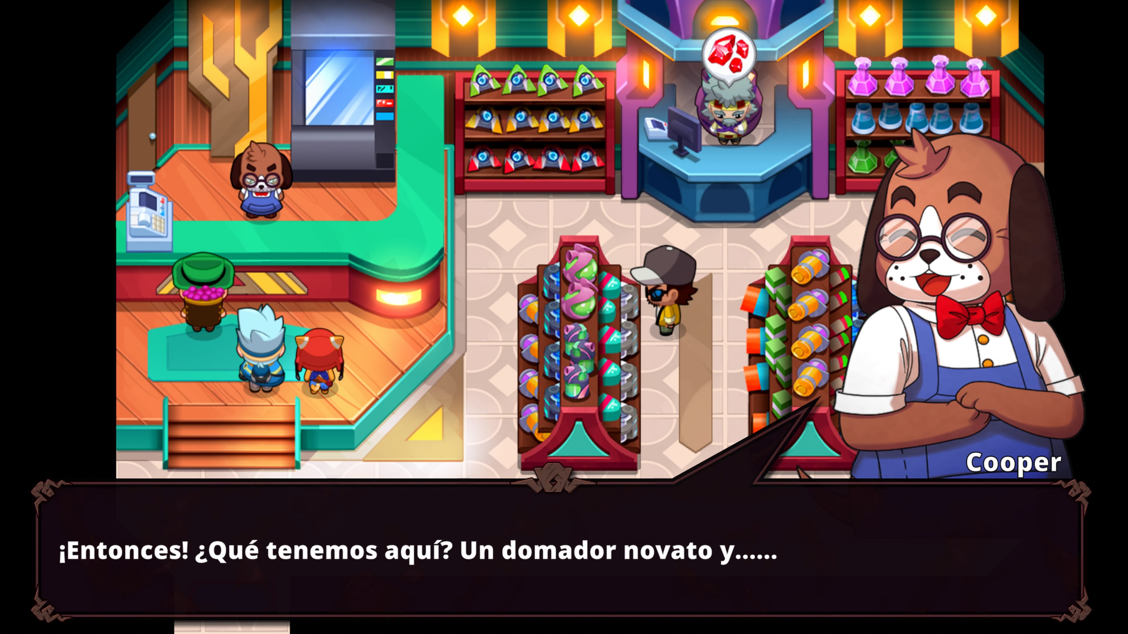 En el campo del mundo también encontraremos otros puntos de interés con los que podemos interactuar. Uno de ellos son esos otros NPC´s que nos desafiarán a un combate nada más vernos. Podemos identificarlos fácilmente pues sobre sus cabezas habrá un globo circular con dos espadas en su interior. Lo interesante de esto en el juego es que los enfrentamientos contra esos otros personajes no sucederán una única vez; si dejamos pasar un tiempo y volvemos de nuevo a una zona en la que ya hayamos combatido, el Domador nos pedirá la revancha y esa vez puede ser incluso más fuerte que la anterior. No obstante, gracias a esos retos prácticamente ilimitados, subir de nivel a nuestro equipo será más rápido que si nos dedicásemos a luchar solo contra Nexomon salvajes, además son una buena fuente de ingresos.