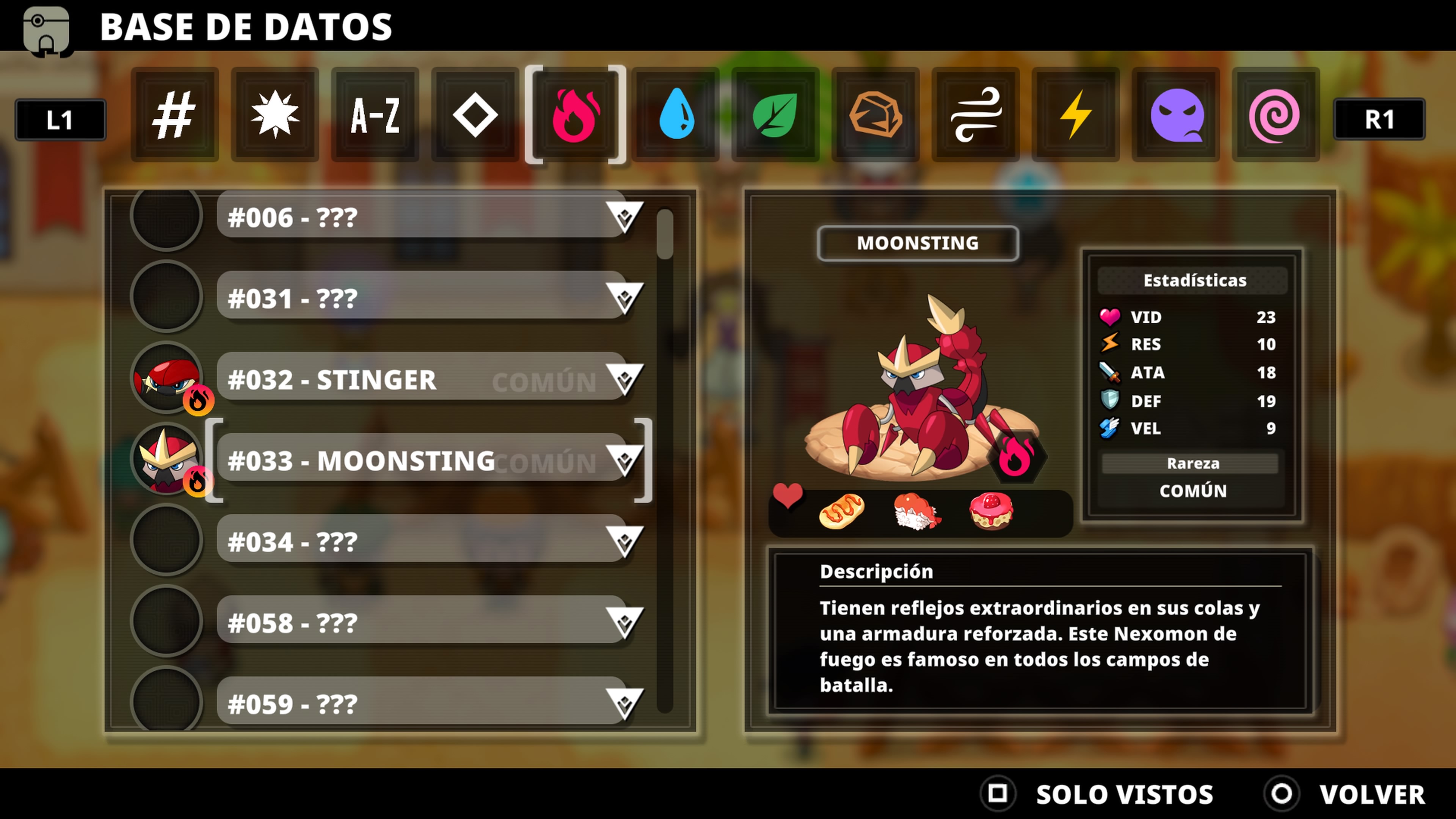 Las dos entregas de Nexomon nos presentarán a un grán numero de estas bestias que podemos capturar. Estos se clasifican según los diferentes tipos a los que hemos hecho alusión, pero también hay que tener en cuenta su rareza ya que esto condiciona su ratio de aparición. Y es que nos podemos encontrar algunos comunes, raros, ultrararos, megararos, únicos o incluso legendarios. Lógicamente a mayor nivel de rareza mayor será la dificulta de captura.