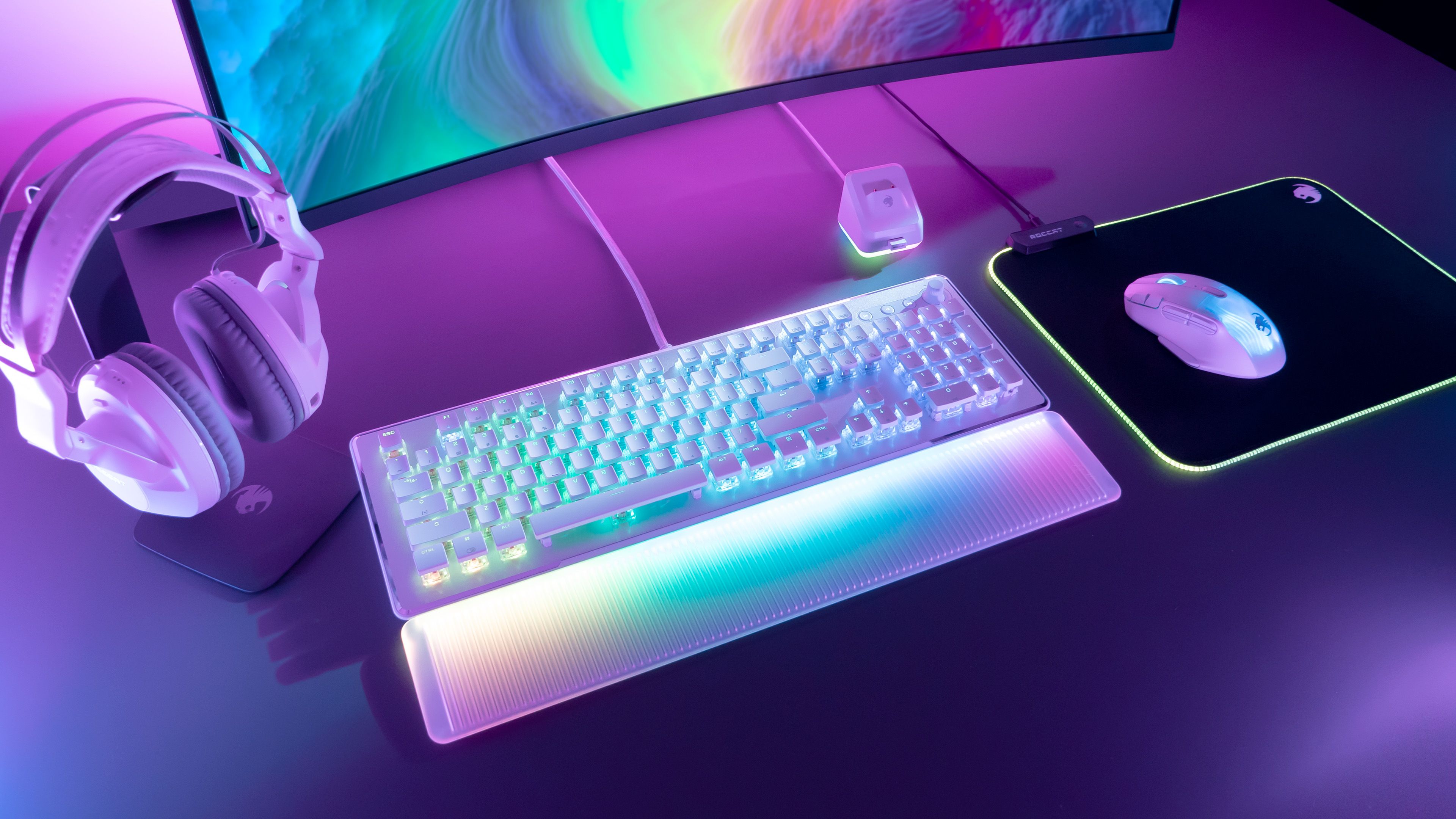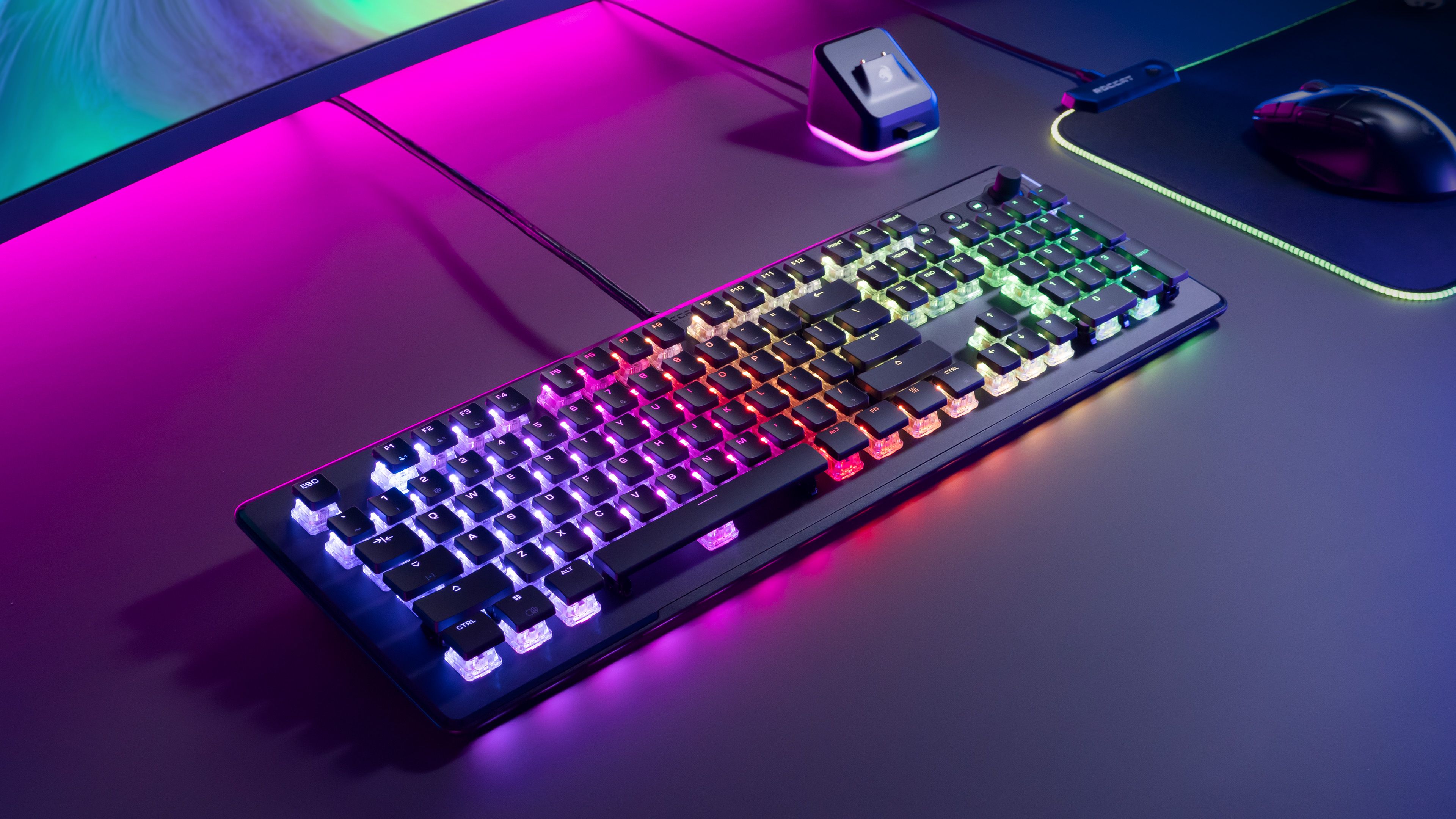 Para la configuración de iluminación RGB definitiva, los ventiladores ROCCAT pueden combinar el teclado Vulcan II Max con el ratón inalámbrico Kone XP Air de ROCCAT y el nuevo cabezal inalámbrico Syn Max Air. Los tres son compatibles con AIMO y ofrecerán una atractiva experiencia de iluminación RGB sincronizada en los tres periféricos.