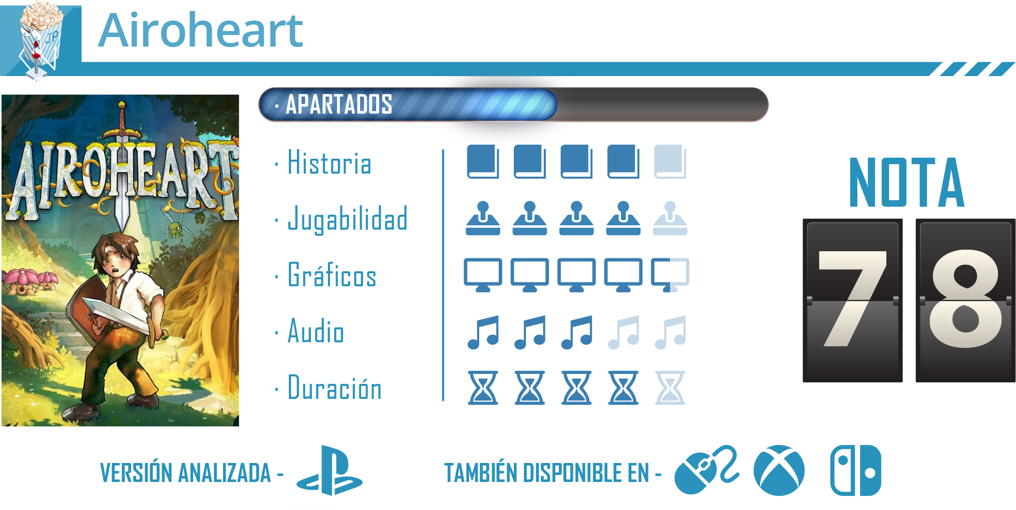 Airoheart es un ARPG clásico que, si bien hereda la fórmula de las aventuras de Zelda clásicas, sabe distanciarse con algunas propuestas únicas y bien ejecutadas. El diseño de su personaje, el contexto en el que se enmarca su aventura, y lo cuidado de su mundo y de su mazmorra, son sus puntos más importantes y, precisamente, esto será lo que conquiste a los fans de este género.