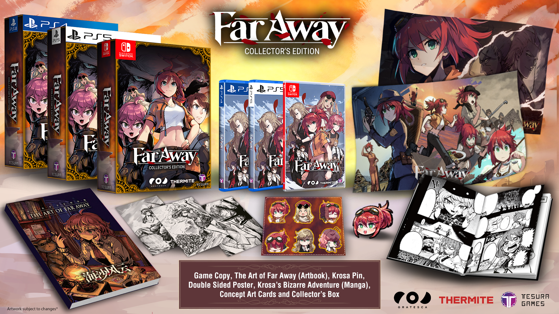 Tesura Games ha anunciado su colaboración junto al publisher Thermite Games con el objetivo de apoyar la campaña de kickstarter de Far Away, una visual novel llena de pasión. Los backers podrán conseguir el juego en formato físico para PlayStation 4, PlayStation 5 y Nintendo Switch en dos ediciones, Normal y Coleccionista.